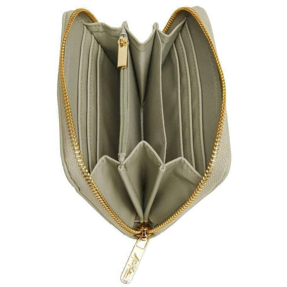 • Lynlås lukning, 2 separate rum, lynlås møntpose, har 6 kort, guldhardware