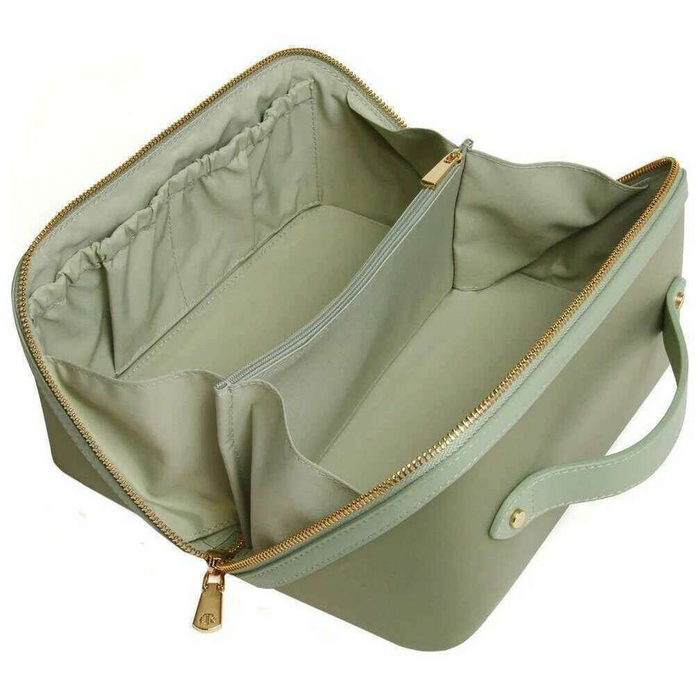 Denne LTC -togkasse for kvinder er udformet af mærket Alice Wheeler London i en grøn farve og er lavet af 100% vegansk faux læder. Det måler 12 cm (højde) x 24 cm (bredde) x 12 cm (dybde). Alle poser leveres komplet med Alice Wheeler London Packaging. Alice Wheeler London LTC Train Case - Sage Green vil gøre en praktisk talt stilfuld rejsekammerat, hvilket giver dig et tilbehør, der vil organisere dine væsentlige ting og se godt ud ved at gøre det. Pak den ud for at finde et dobbelt rum med indre lommer og en lynlåslomme i midten for mindre genstande, som du ikke ønsker at strejfe løs. Det har et øverste bæregang og er færdig med Debossed Branding.