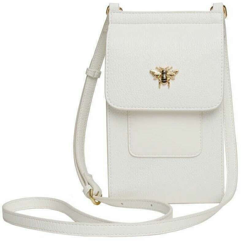Denne kvindes mini Bloomsbury crossbody taske af Brand Alice Wheeler London er lavet af 100% vegansk faux læder og vises i hvidt. Det måler 20 cm (højde) x 12 cm (bredde) x 3 cm (dybde). Alle poser kommer komplet i Alice Wheeler London Packaging. Alice Wheeler London Mini Bloomsbury CrossBody Bag - White er en super letvægtspose, der er perfekt til enhver lejlighed og ethvert tøj. Dette unikke design har en praktisk indbygget kortholder på bagsiden af ​​posen, der kan indeholde to kort og en indvendig lomme, der er perfekt til at opbevare dine mindre genstande. Lavet af vegansk faux læder af høj kvalitet betyder, at denne taske er helt miljøvenlig. Det berømte bi -logo og navnebranding af denne sag, hvilket giver det et elegant look.