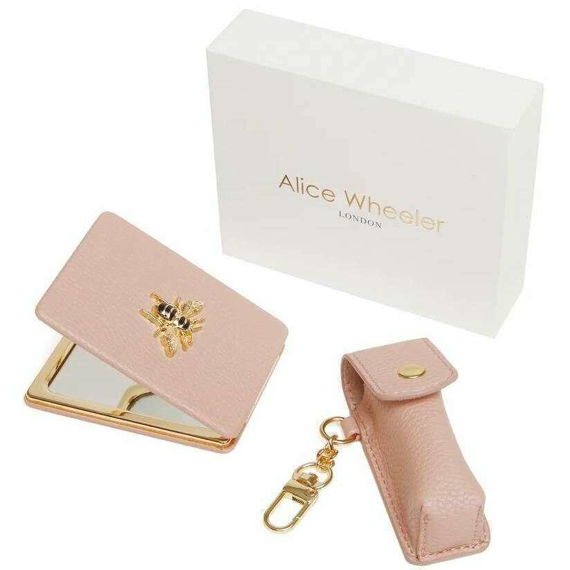 Alice Wheeler London Oblong Compact Mirror and Lipstick Holder Gift Set - Pink