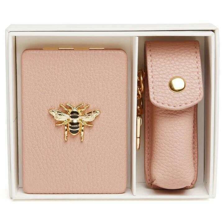 ) LIPSTICK HOLDER - 8,5 cm (højde) x 3 cm (bredde) x 3 cm (dybde). Alle komprimeringer leveres komplet med Alice Wheeler -emballage. Alice Wheeler London Oblong Compact Mirror og Lipstick Holder Gift Set - Pink vil lave en fantastisk gave til dig selv eller nogen, du elsker. Den smukt ikoniske bi -udsmykning vises på spejlet, og begge har matchende farver og hardware, hvilket gør dem til et stilfuldt matchende par. Spejlet er fantastisk til hverdagslige touch -ups, og læbestiftholderen er perfekt til at beskytte din foretrukne hverdagslipstift med stil. Disse vil være en perfekt tilføjelse til din daglige taske, tilføje bekvemmelighed. "! =" "]})
