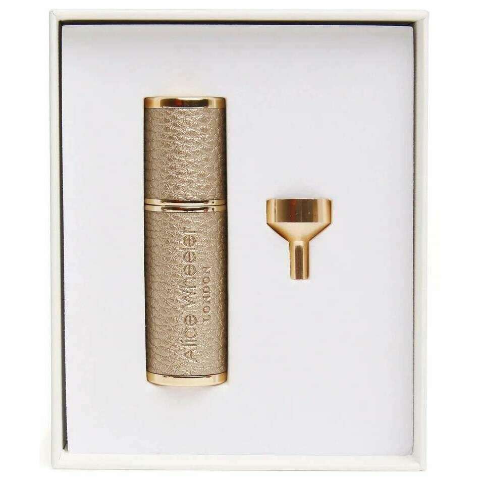 Denne kvindes rejseforstærker er lavet af 100% vegansk faux læder, vist i en bronzefarve og er fra Brand Alice Wheeler London. Den måler boks - 12,5 cm (højde) x 10,5 cm (bredde) x 3 cm (dybde). Alle forstøvere kommer komplet med Alice Wheeler -emballage. Alice Wheeler London Travel Atomiser - Bronze er den perfekte rejsekammerat til at opbevare din yndlingsduft uden at skulle bringe hele flasken med dig, der risikerer, at den smadrer eller går tabt. Den smukke teksturerede veganske faux læder, guldhardware og præget Alice Wheeler -branding kombineret sammen giver et fantastisk og luksuriøst udseende perfekt til at bære din duft i stil, mens du holder dit tilbehør moderigtigt. Denne atomiser leveres med en fantastisk lille guldtragt, så du kan genopfylde, når du ønsker det.