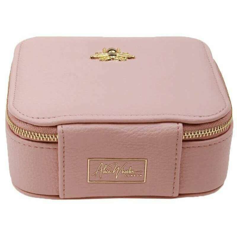 Designer Alice Wheeler London har bragt dig denne kvindes veganske faux læder og faux ruskind interiør smykkerboks ved hjælp af lyserøde toner. Det måler 13,5 cm (højde) x 13,5 cm (bredde) x 5 cm (dybde). Alle smykkebokse leveres komplet med Alice Wheeler -emballage. Alice Wheeler London Travel Jewellery Box - Pink bliver en favorit til hele tiden med sin store organisation og perfekte størrelse til at glide ind i enhver taske uanset lejligheden. Med en ringrulle, der er fantastisk til øreringe og dine mest slidte ringe, 3 små rum til mindre stykker, 2 større siderum til halskæder og armbånd og et spejl på låget. Den guld-tonede lynlås-lukning tilbyder sikkerhed og luksus. Komplet med signaturen HoneyBee -logo pyntet til toppen af ​​denne sag.