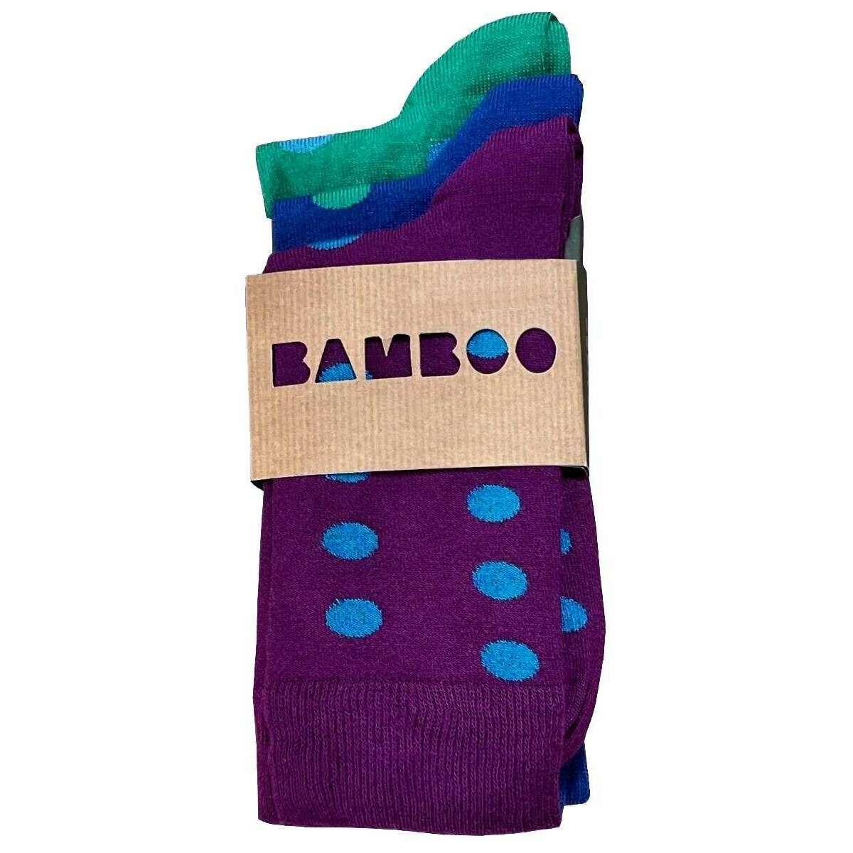 Bassin og brun bambus plettet tre-pak sokker - lilla/grøn/blå