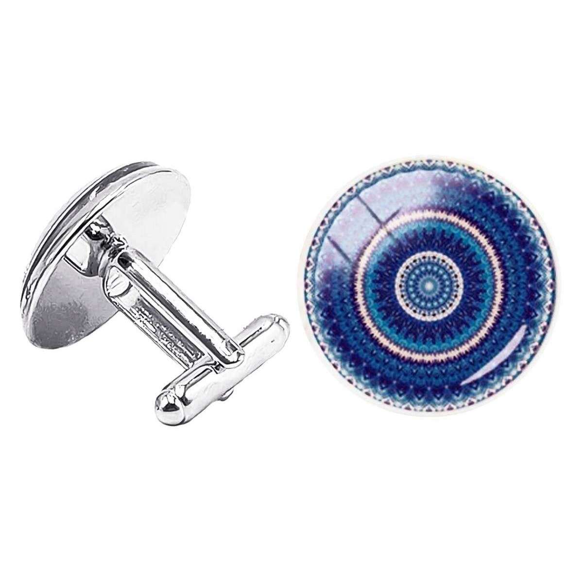 Bassin og brune koncentriske cirkler manchetknapper - blå/hvid