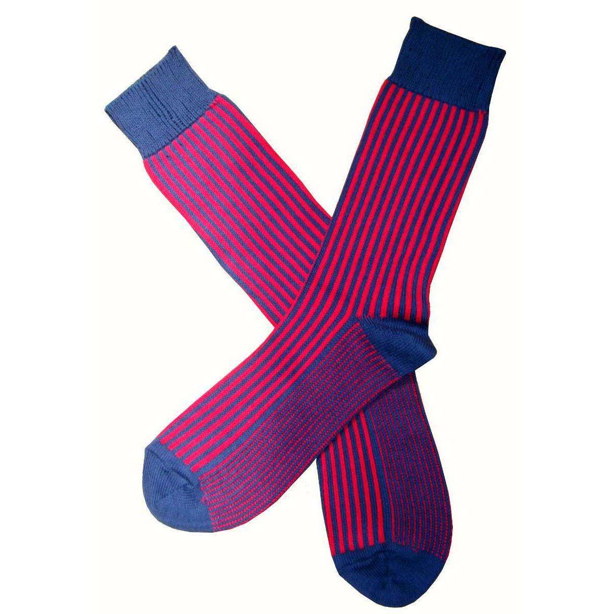 Bassin og brun lodret stribe midtcalf sokker - Midt blå/dyb lyserød