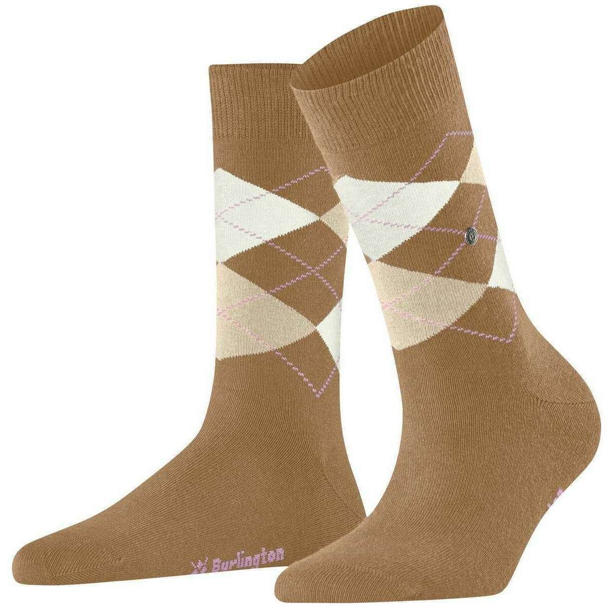 Burlington Basic Argyle Gift Box Socks - Tea Rose Pink/Auburn Brown