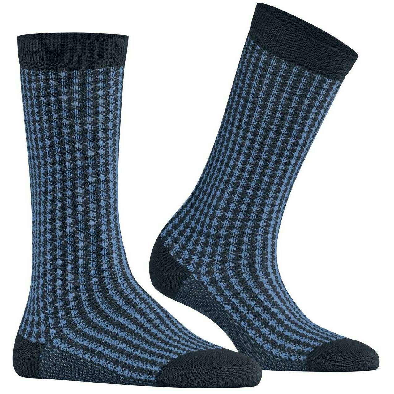 Perfekte til kvinder er disse Burlington marineblå pepita sokker, de er også lavet af 73% jomfruuld, 25% polyamid (8% genanvendt) og 2% elastan. Også de marine blå sokker er designet i et houndstooth mønster, Det anbefales at vaske ved 30 grader for at holde disse sokker i god stand. Alle sokker kommer komplet med burlington sokker tags. Burlington Pepita Socks - Marine Blue er en stilfuld, unik tilføjelse til enhver garderobe, designet til at tilføje et strejf af flair og samtidig sikre komfort og holdbarhed. Disse sokker kombinerer det delikate houndstooth-design med den ikoniske Burlington-clips på siden for at forbedre ethvert outfit. Den varmende uldblanding holder disse sokker åndbare, mens strækstoffet sikrer, at de sidder behageligt uden at glide.