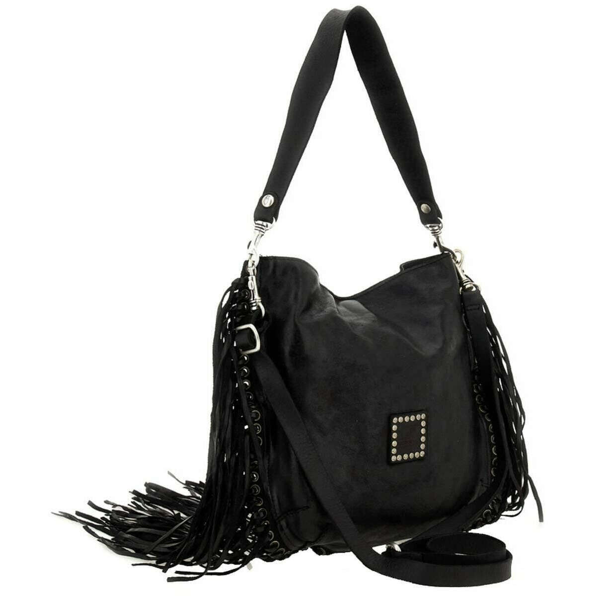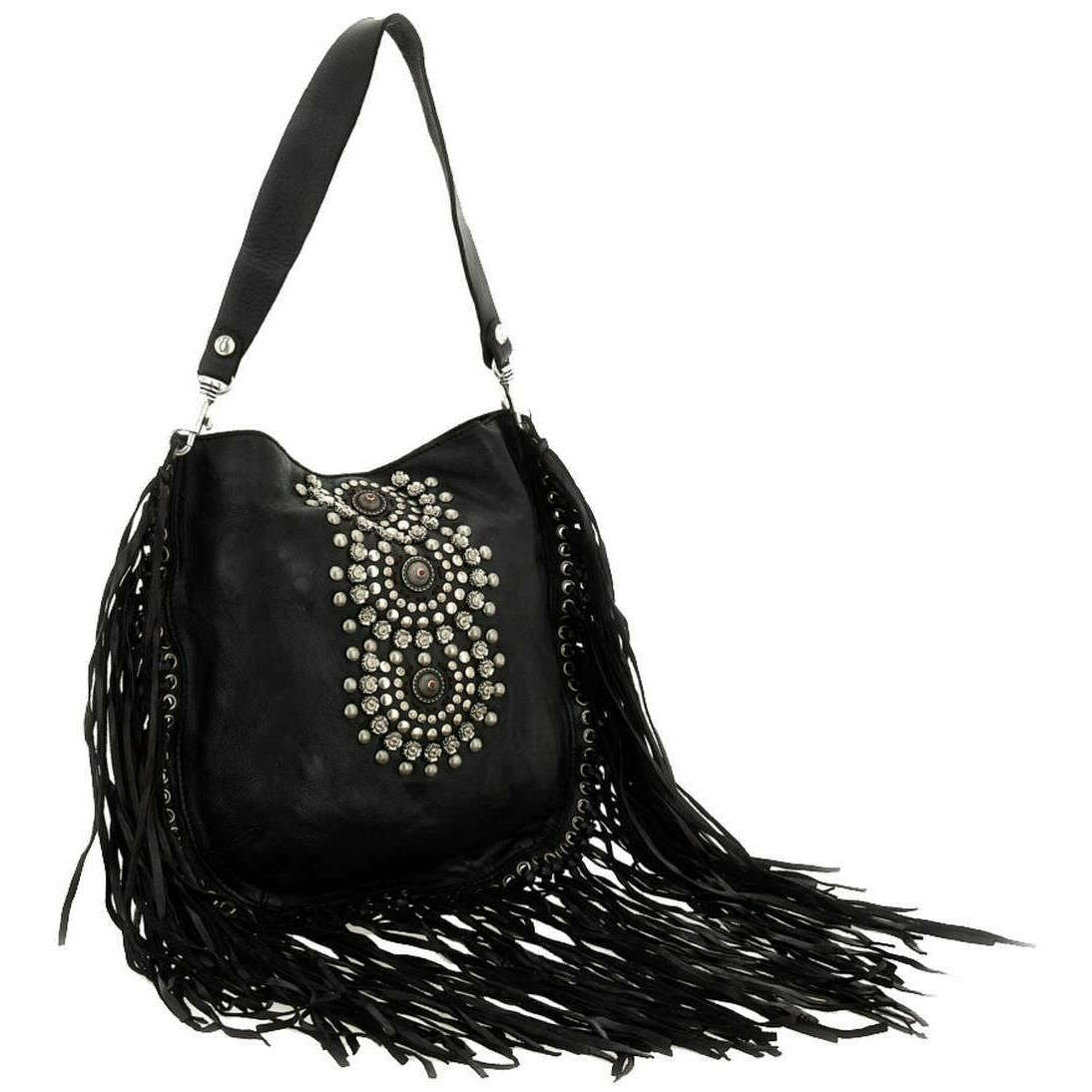 Fremstillet af 100 % okselæder er denne sorte camelia skuldertaske til kvinder af designeren Campomaggi. Den måler 30 cm (højde) x 30 cm (bredde) x 0,5 cm (dybde). Campomaggi har lavet denne camelia skuldertaske i Italien. Det anbefales at børste med en fugtig klud og undgå at bruge rengøringsmidler for at holde denne taske i god stand. Alle poserne kommer komplet med campomaggi emballage. Campomaggi Camelia Skuldertaske - Sort er en must-have hverdagstaske, der tilføjer luksus og et sjovt look til din påklædning. Med kvaster og rhinsten tilføjer den et elegant og piget touch, mens den aftagelige skulderrem og den aftagelige justerbare crossbody-rem tilføjer alsidighed afhængigt af lejligheden. Hovedrummet byder på rigelig opbevaring, så du har dine væsentlige ting med dig. Den er lavet af premium læder og har en smuk vintage-inspireret farve opnået gennem vegetabilsk garvning, som er en traditionel proces, der bruger naturlige ingredienser til en rig finish.