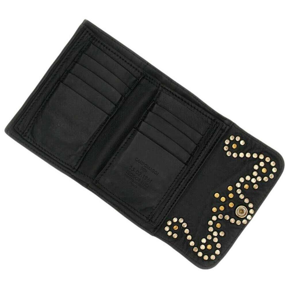 Fremstillet af 100 % vegetabilsk garvet okselæder er denne sorte mirta siena-pung til kvinder fra designeren Campomaggi. Den måler 14 cm (højde) x 10 cm (bredde) x 1,5 cm (dybde). Campomaggi har lavet denne mirta siena flap over pung i Italien. Alle pungene kommer komplet med campomaggi-emballage. Campomaggi Mirta Siena Flap Over Purse - Sort er et raffineret tilbehør, der viser mærkets karakteristiske italienske håndværk. Fremstillet af premium vegetabilsk garvet okselæder, udvikler den en rig patina over tid, hvilket afspejler materialets naturlige skønhed og holdbarhed. Fronten er prydet med et elegant nitterdesign, der tilføjer et subtilt dekorativt touch, der fremhæver dens klassiske silhuet. Pungen, der er sikret med en trykknap, åbnes for at afsløre et omhyggeligt organiseret interiør med tre rum og ti kortholdere, der er ideelle til at holde kort, kontanter, kvitteringer og væsentlige ting pænt arrangeret. På trods af dets strukturerede layout forbliver designet slankt og nemt at bære, hvilket gør det perfekt til hverdagsbrug. Håndlavet i Italien, Campomaggi Mirta Siena Flap Over Purse blander funktionalitet, håndværksmæssige detaljer og tidløs stil, hvilket gør den til en sofistikeret tilføjelse til enhver tilbehørskollektion.