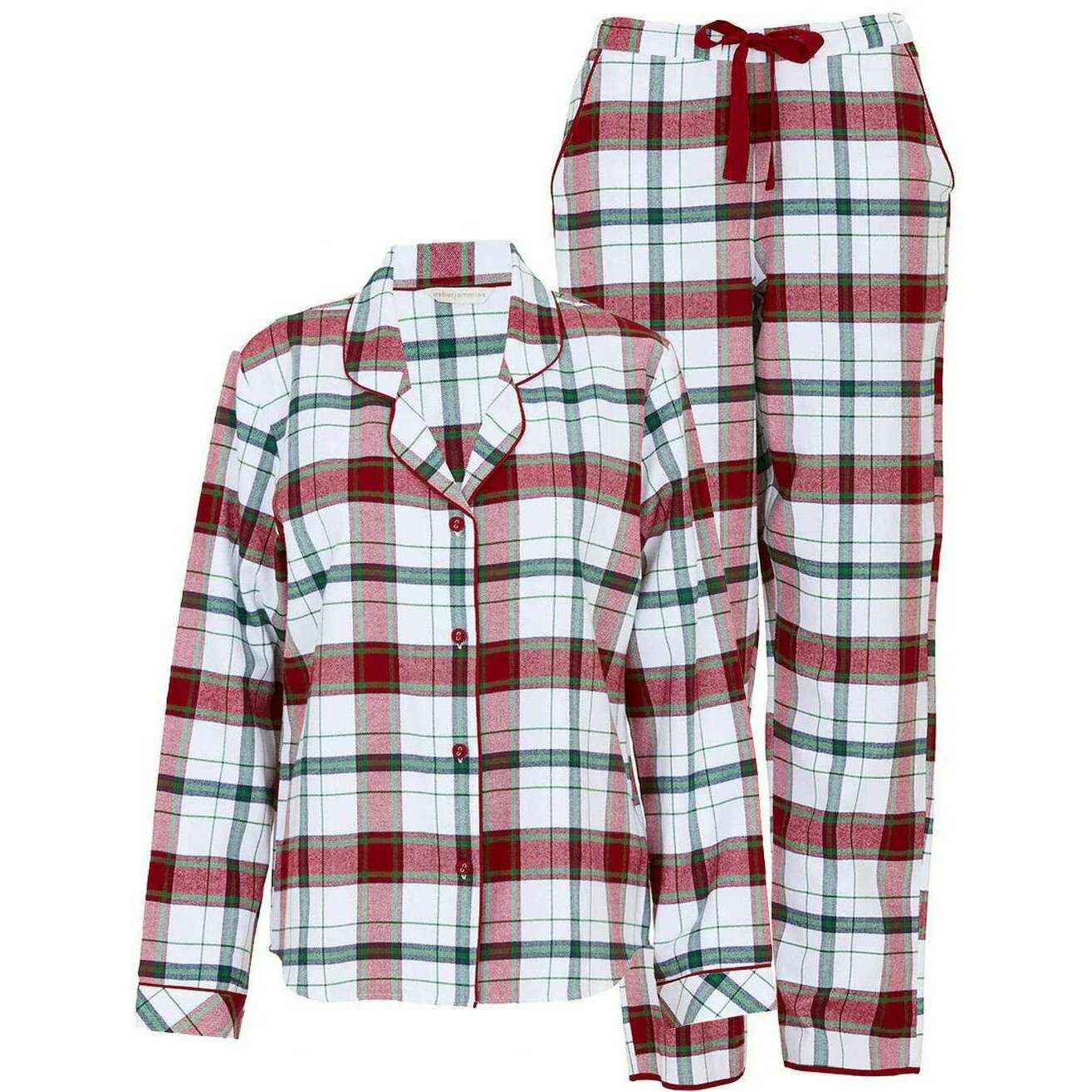 Dette pyjamassæt med børstet ternet pyjamas til kvinder af mærket Cyberjammies er lavet af 100 % bomuld og fremvises i rødt. Også den røde/hvide/grønne pyjamas er designet i et ternet mønster. Det anbefales at maskinvaskes med vrangen ud, må ikke lægges i blød, vaskes med lignende farver for at holde disse pyjamaser i god stand. Alle pyjamaserne kommer komplet med cyberjammies-mærker. Cyberjammies Blaze Brushed Ternet pyjamassæt - rød/hvid/grøn er den slags par, du vil have på hele tiden, dag eller nat, mens du er i dit hyggelige hjem. Det smukke, ternede design giver klassisk karakter, mens det lækre bomuldsmateriale vil føles luksuriøst mod din hud. Skjorten med knapper giver dig tidløs stil, mens bunden har en snøre for at give en behagelig pasform.