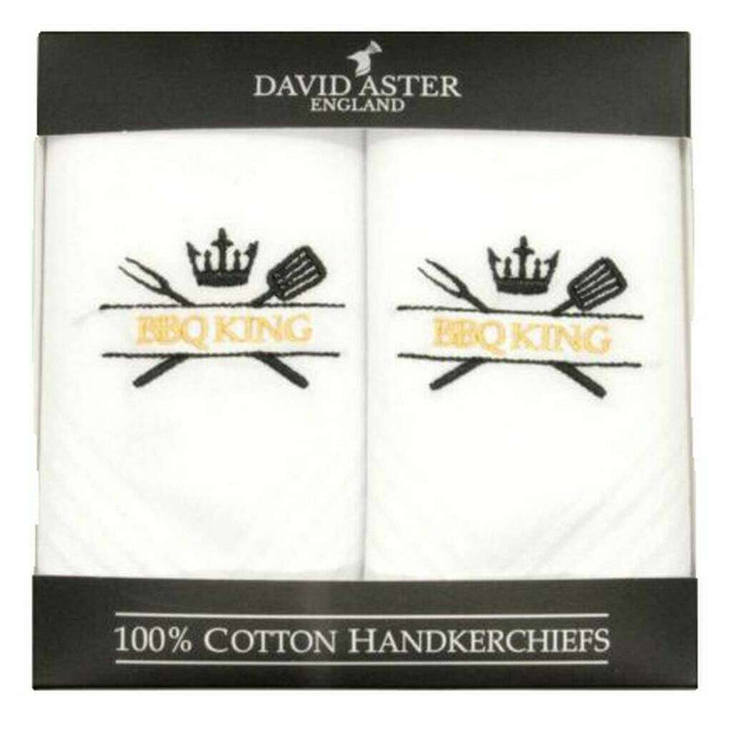 David Aster BBQ King broderede lommetørklæder - hvid