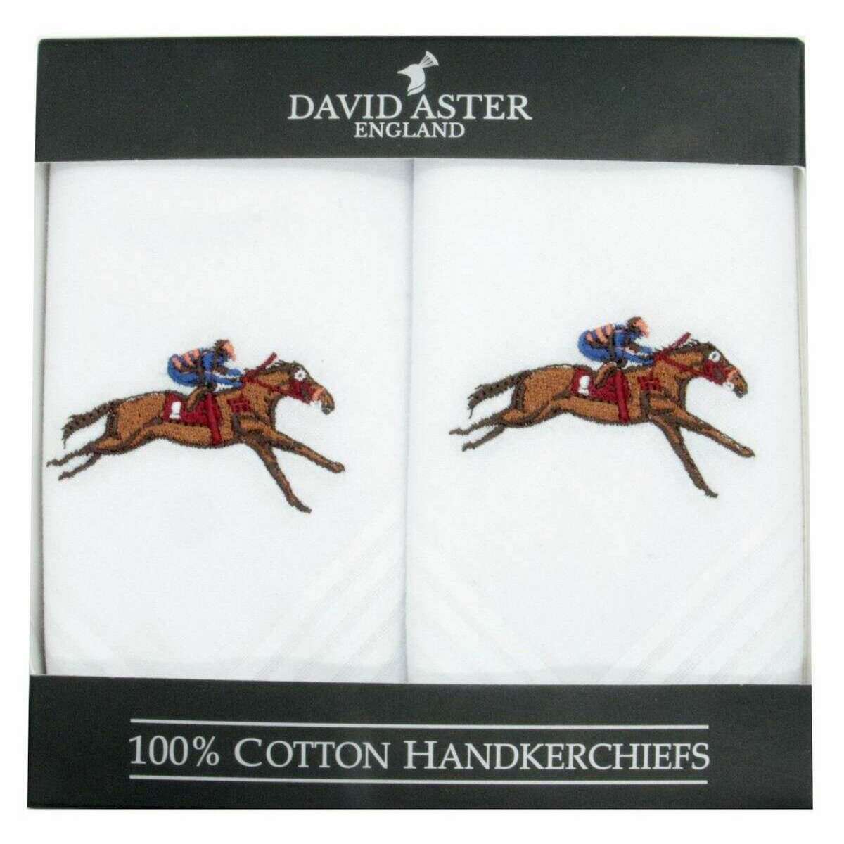David Aster Væddeløbshest Broderede Lommetørklæder - Hvid