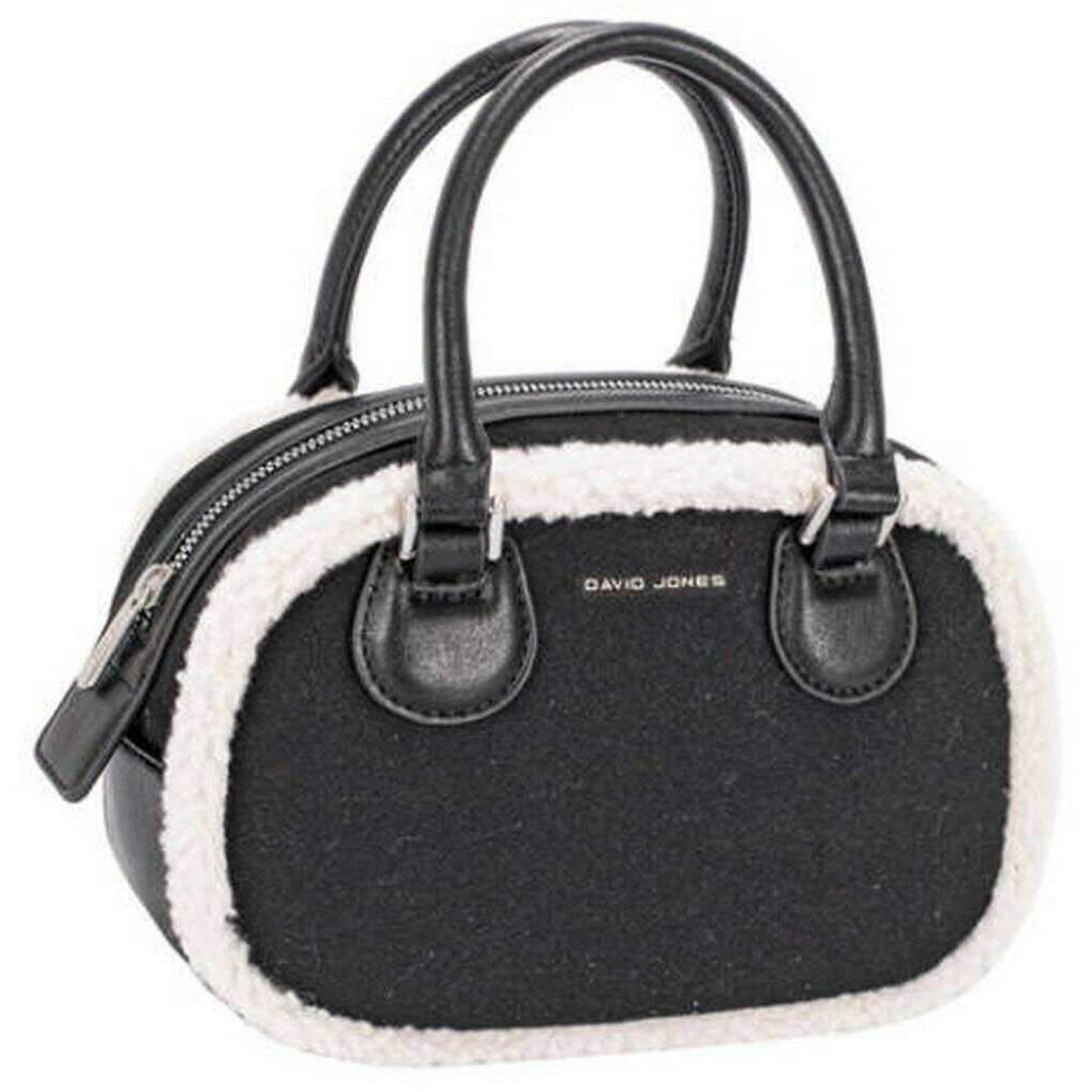 • Justerbar/aftagelig rem, 2 bærehåndtag, indvendig lynlås og åbne lommer, toplukning med lynlås, imiteret pels, David Jones navnemærke