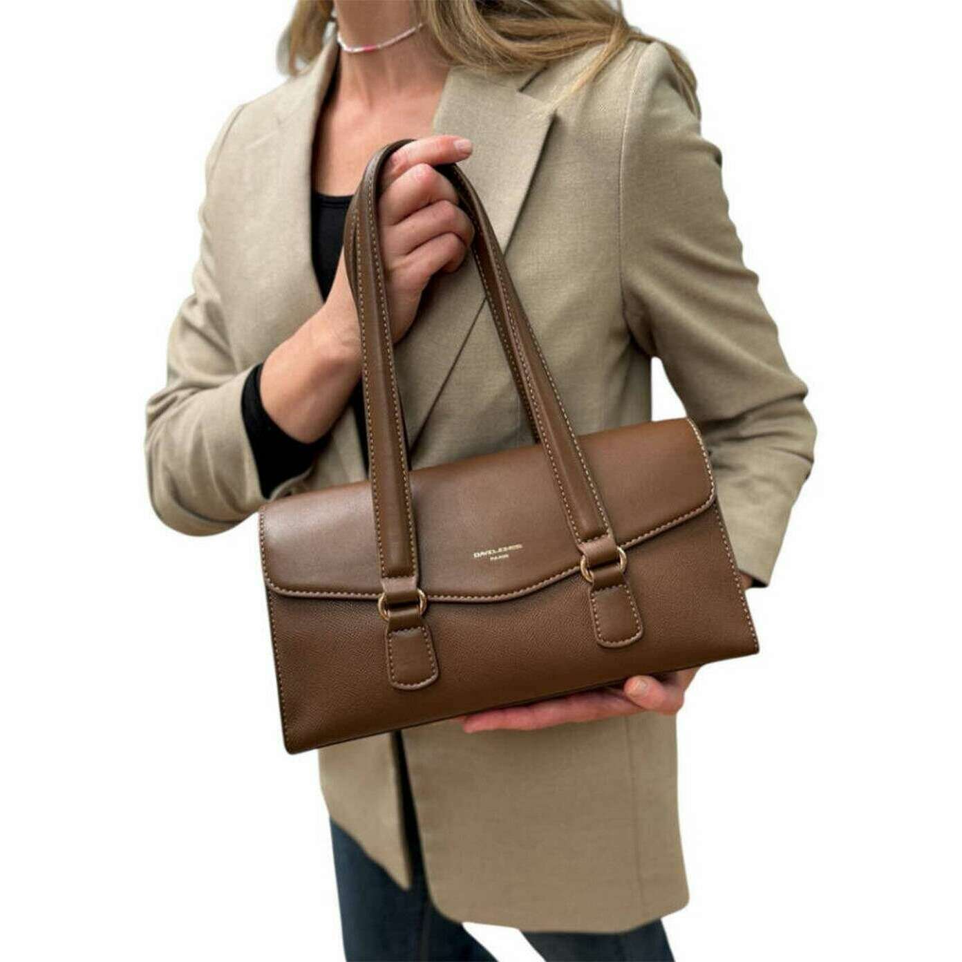 David Jones Lang Halv Flap Kort Skuldertaske - Kakaobrun