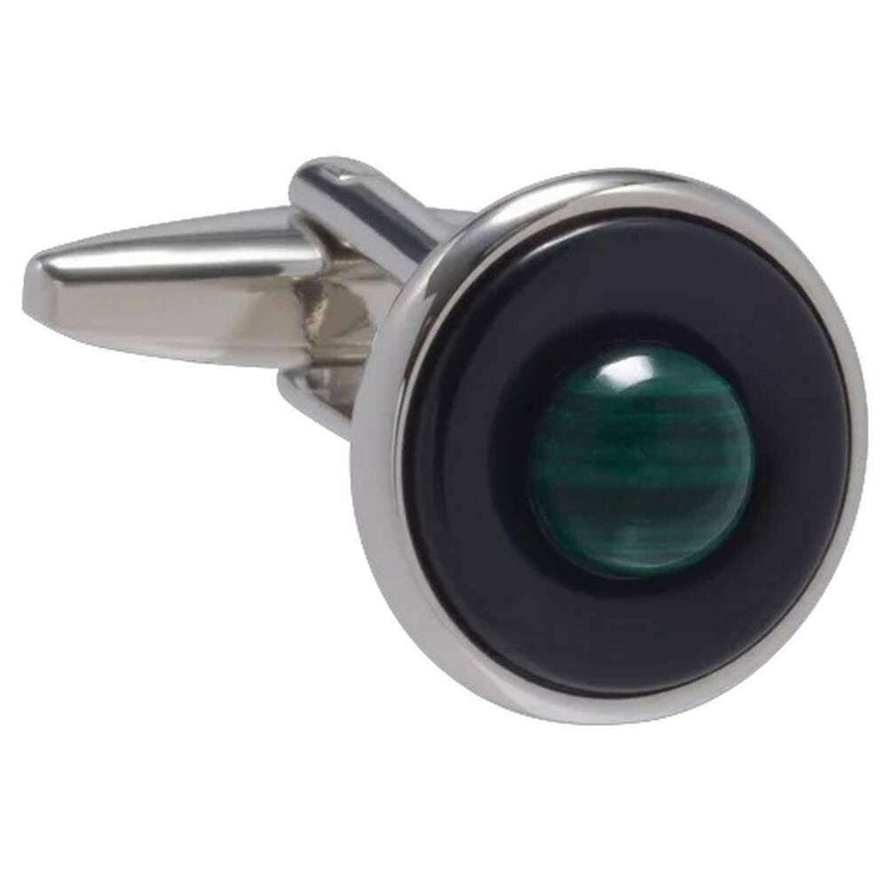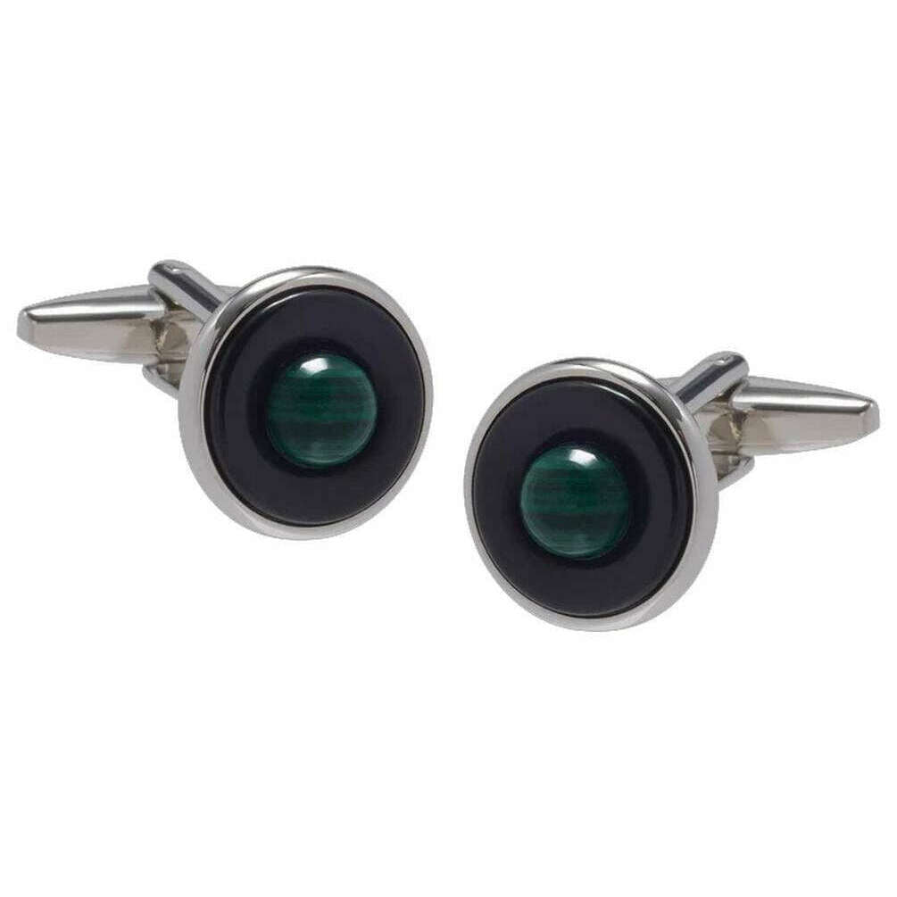 • Inspireret af Rings of Saturn, Green Malachite Cabochon Center, Onyx Stone Middle, Natural Semi-Precious Stones, Standard Cufflink Bascule