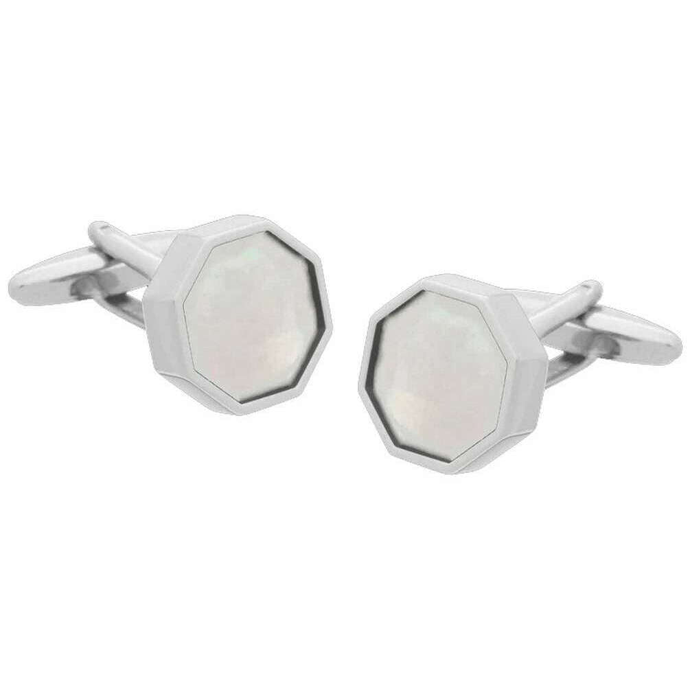 David Van Hagen Mother Of Pearl ottekantede manchetknapper - Hvid/Sølv