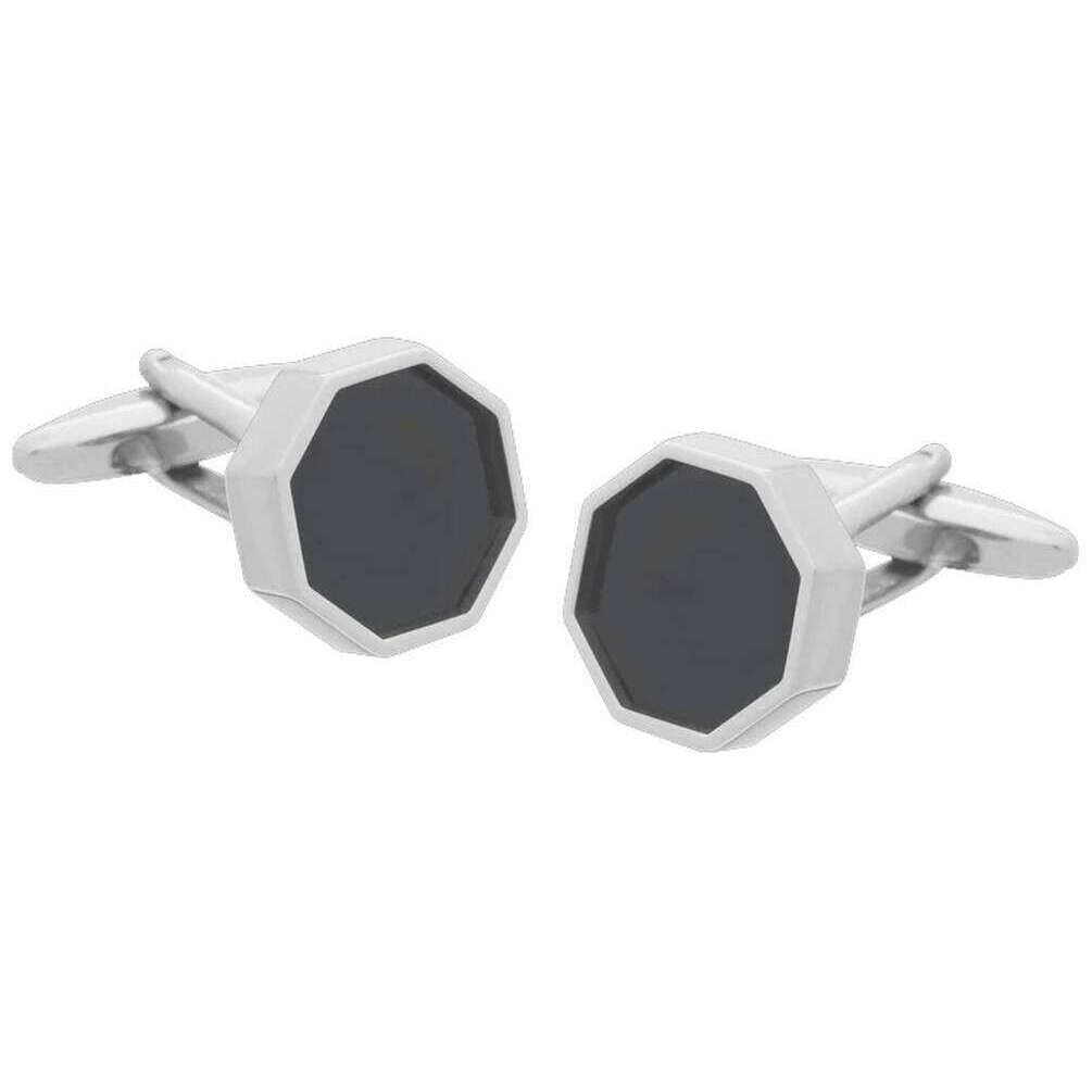 David Van Hagen Onyx ottekantede manchetknapper - Sort/sølv