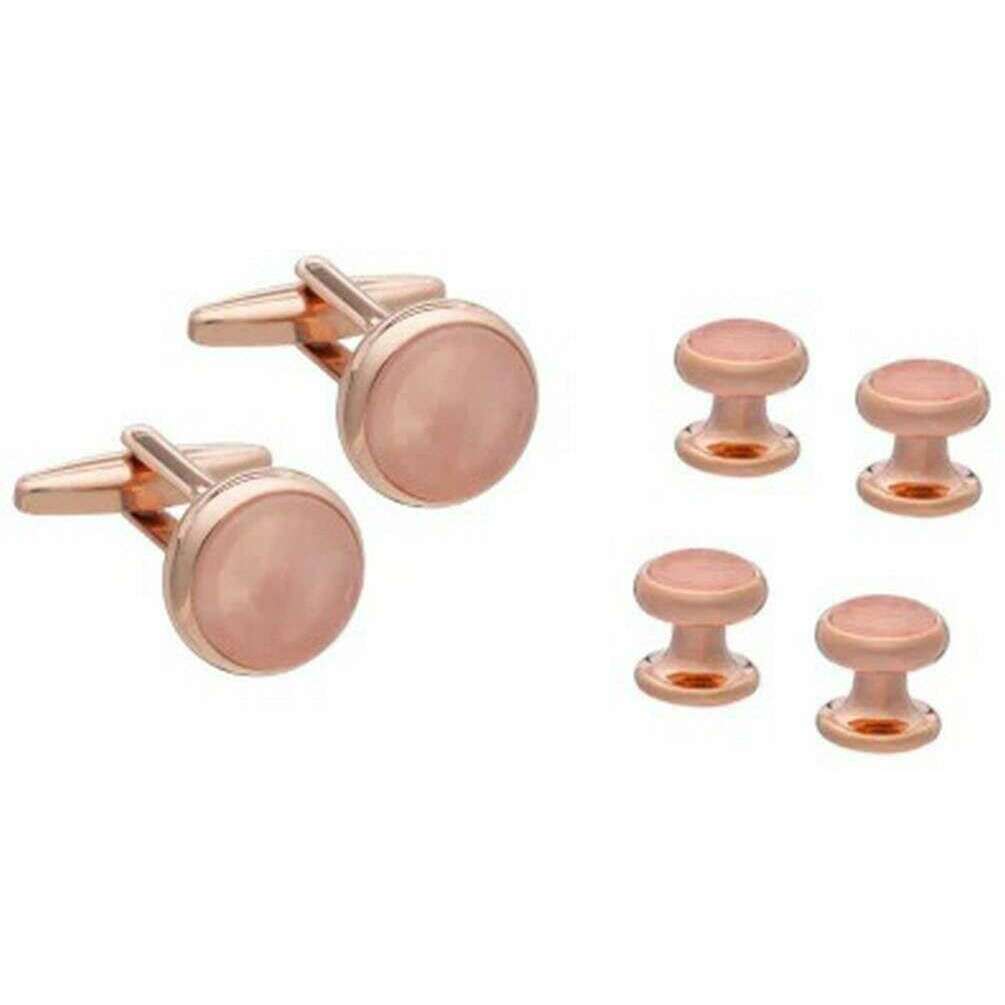David Van Hagen Rose Quartz Kjole Stud og Manchetknapper Sæt - Pink/Rose Gold