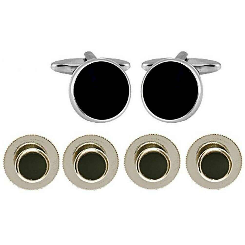 David Van Hagen Runde Manchetknapper og Kjole Stud Sæt - Sort/Sølv