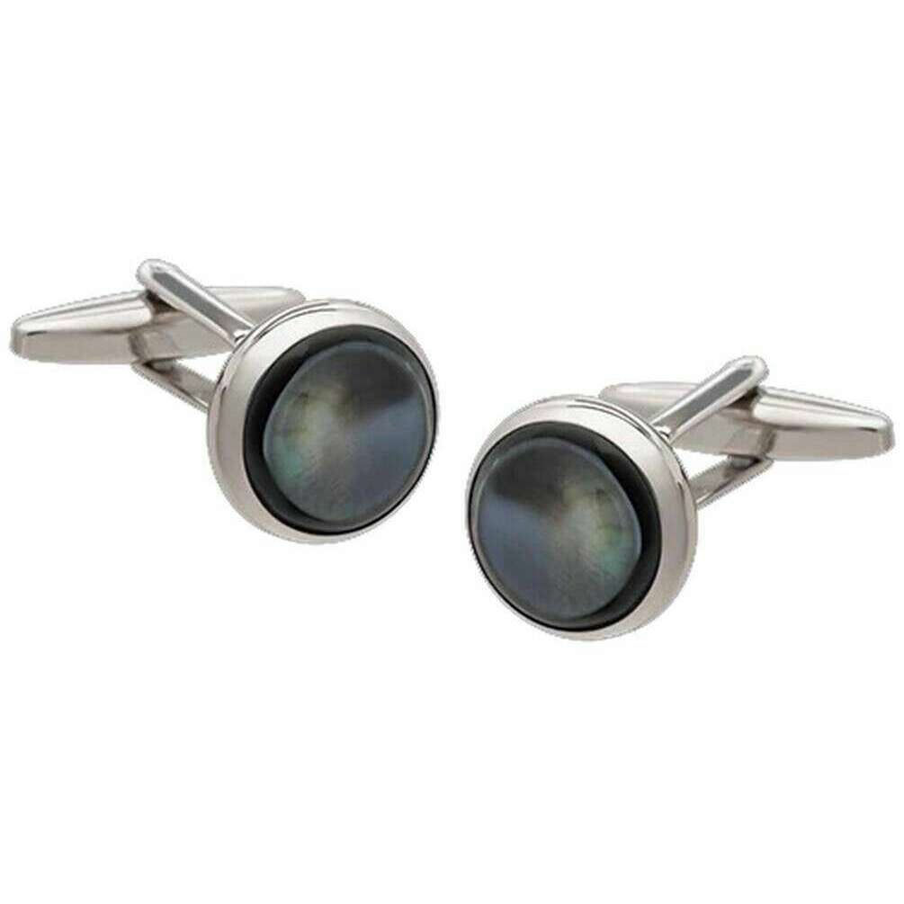 • Standard manchetknap bascule , 14 mm diameter , konkav dip røget perlemor sten , naturlige halvædelsten , sølv hylster