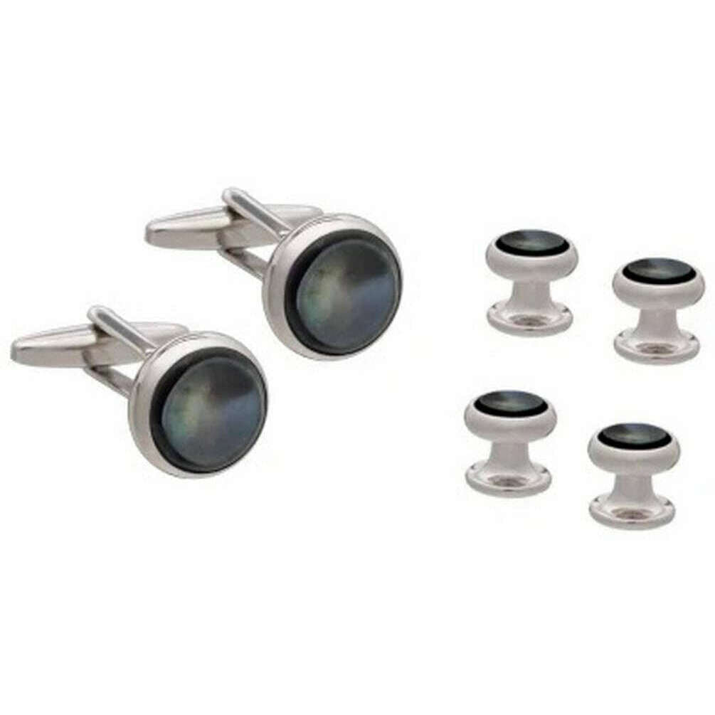 Disse røgfarvede perlemor-kjole med nitter og manchetknapper, der bruger sølv uædle metal, er perfekte til mænd og et must have. Alle skjortenitterne kommer komplet med david van hagen emballage. David Van Hagen Smokey Mother Of Pearl-kjole med knopper og manchetknapper - Grå/sølv har sofistikerede sølvdetaljer og en Smokey Mother of Pearl-sten. Manchetknapperne er udstyret med en standard bascule, hvilket gør dem nemme at tilføje og fjerne fra din påklædning. Dette matchende sæt er perfekt til alle lejligheder og tilføjer et strejf af luksus til din påklædning.
