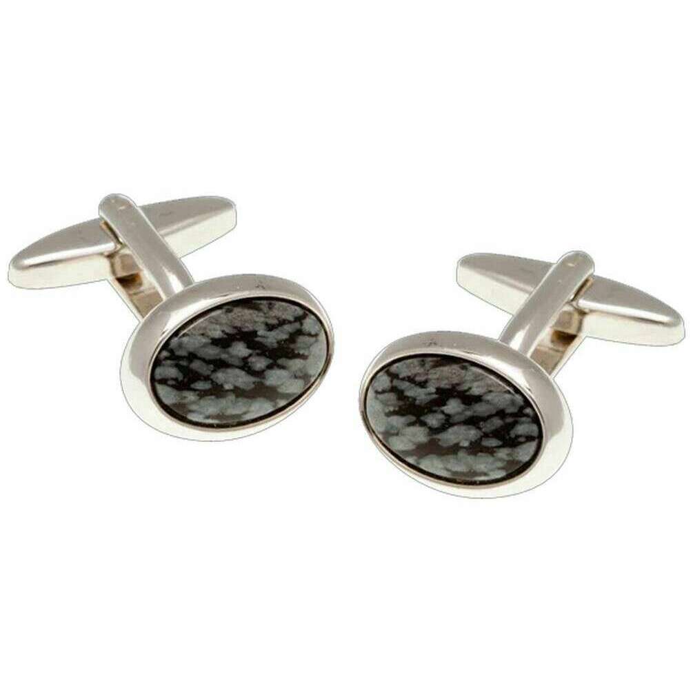 • Cabochon halvædel snefnugsten, polerede kanter, standard manchetknapper