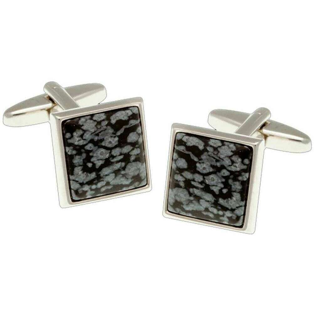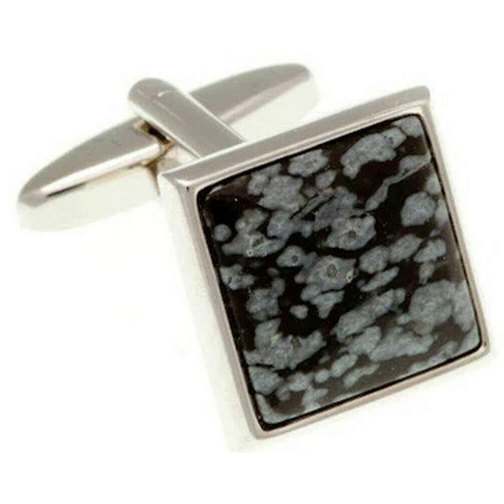 • Cabochon halvædel snefnugsten, polerede kanter, standard manchetknapper
