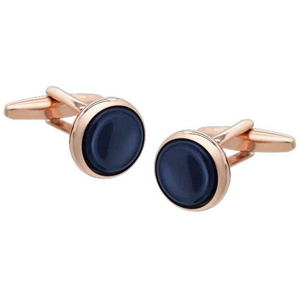 • Standard manchetknap bascule, 14 mm diameter, konkav dip sodalit sten, naturlige halvædelsten, rosa guld beklædning