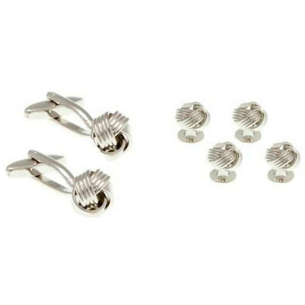 David Van Hagen vævet knude-kjolesæt med knopper og manchetknapper - sølv