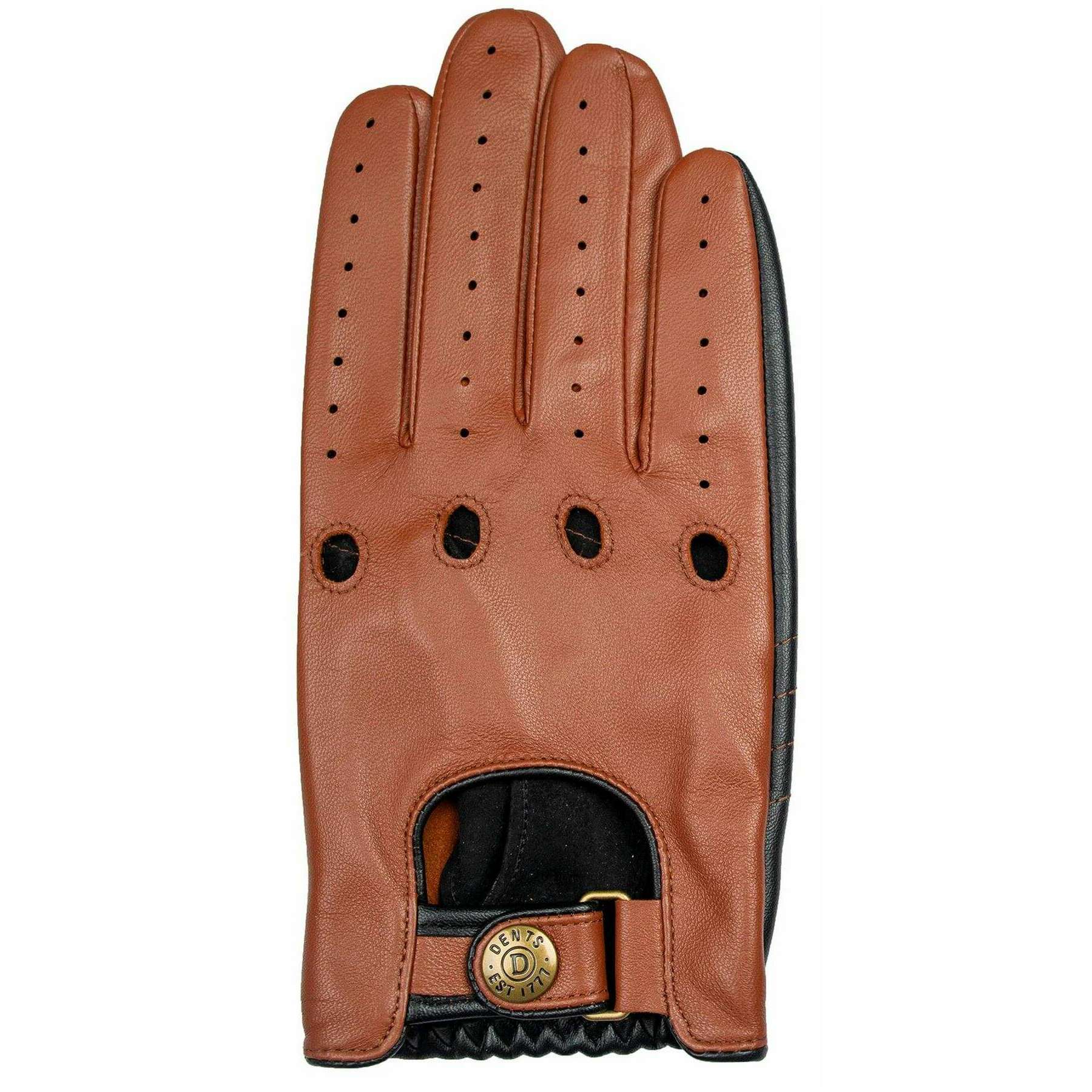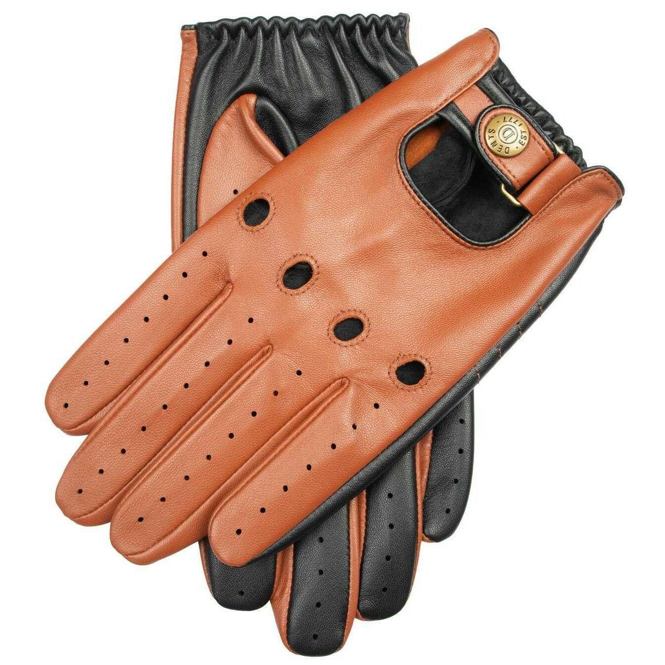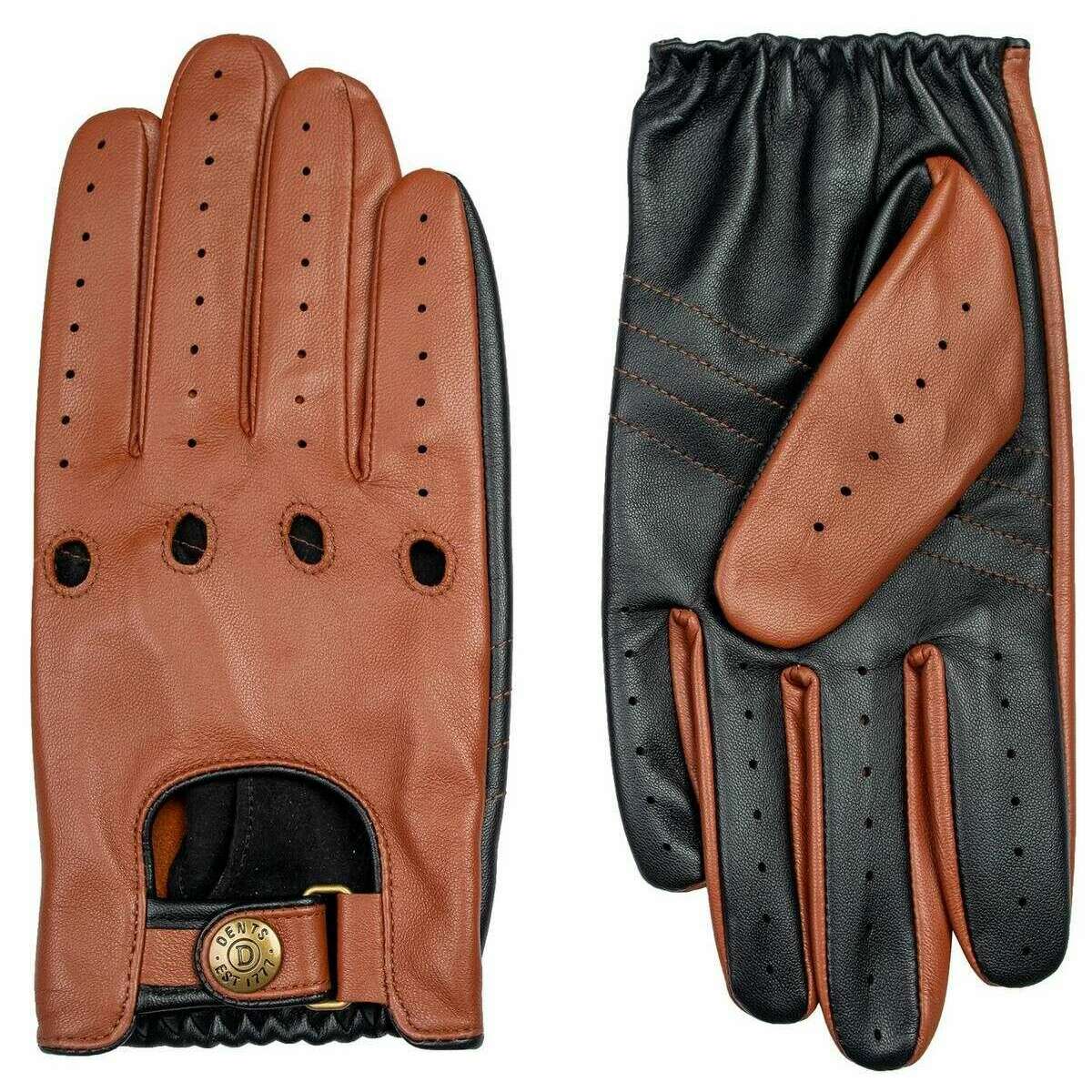 Dents Aintree Tofarvede læder kørehandsker - Cognac Brun/Sort