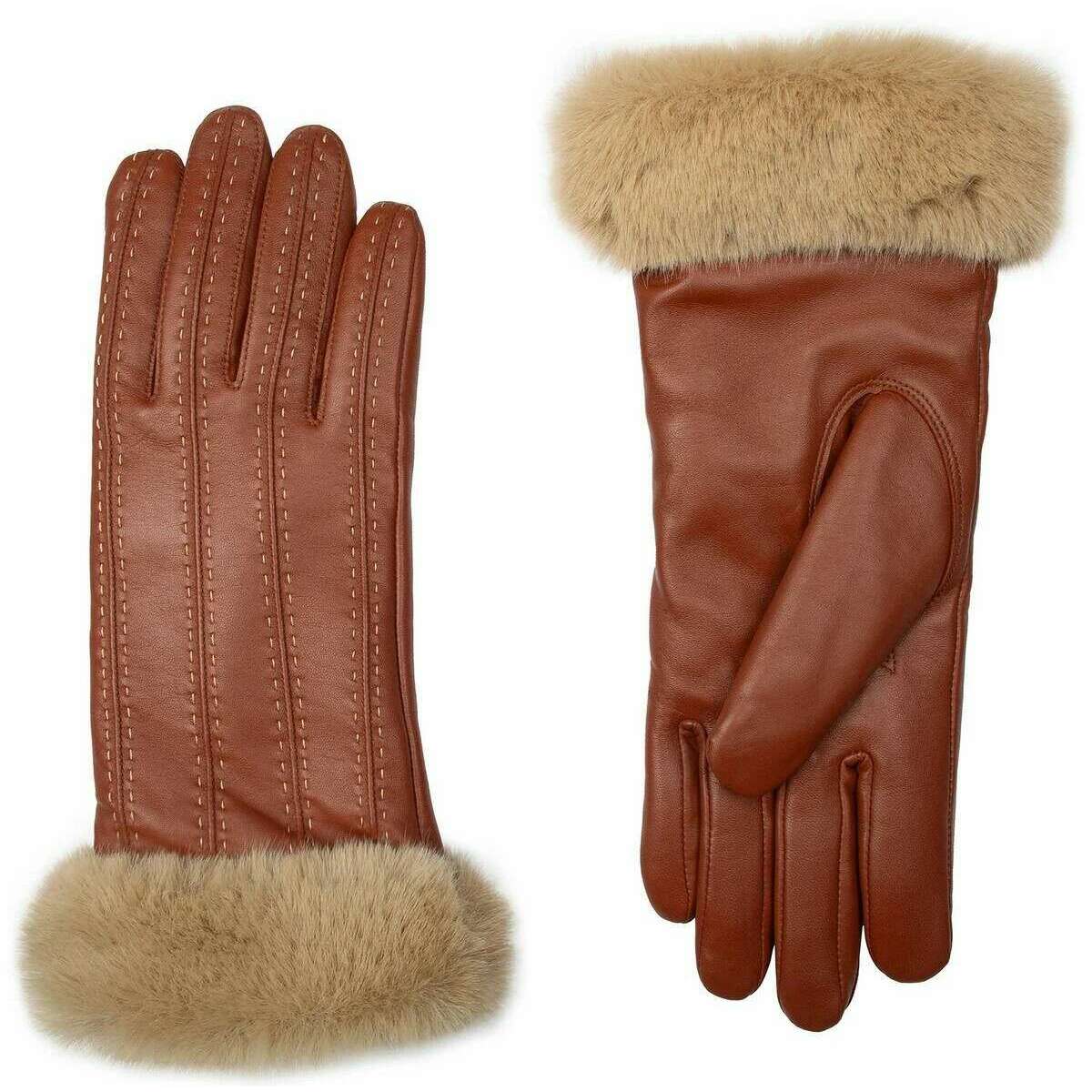 Buler cassie kontrast syning læderhandsker - cognac tan/naturlig beige