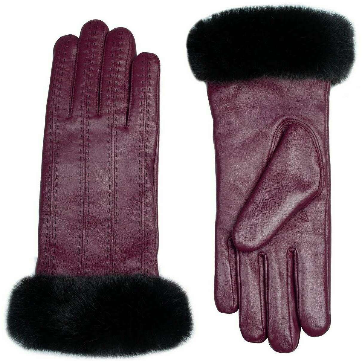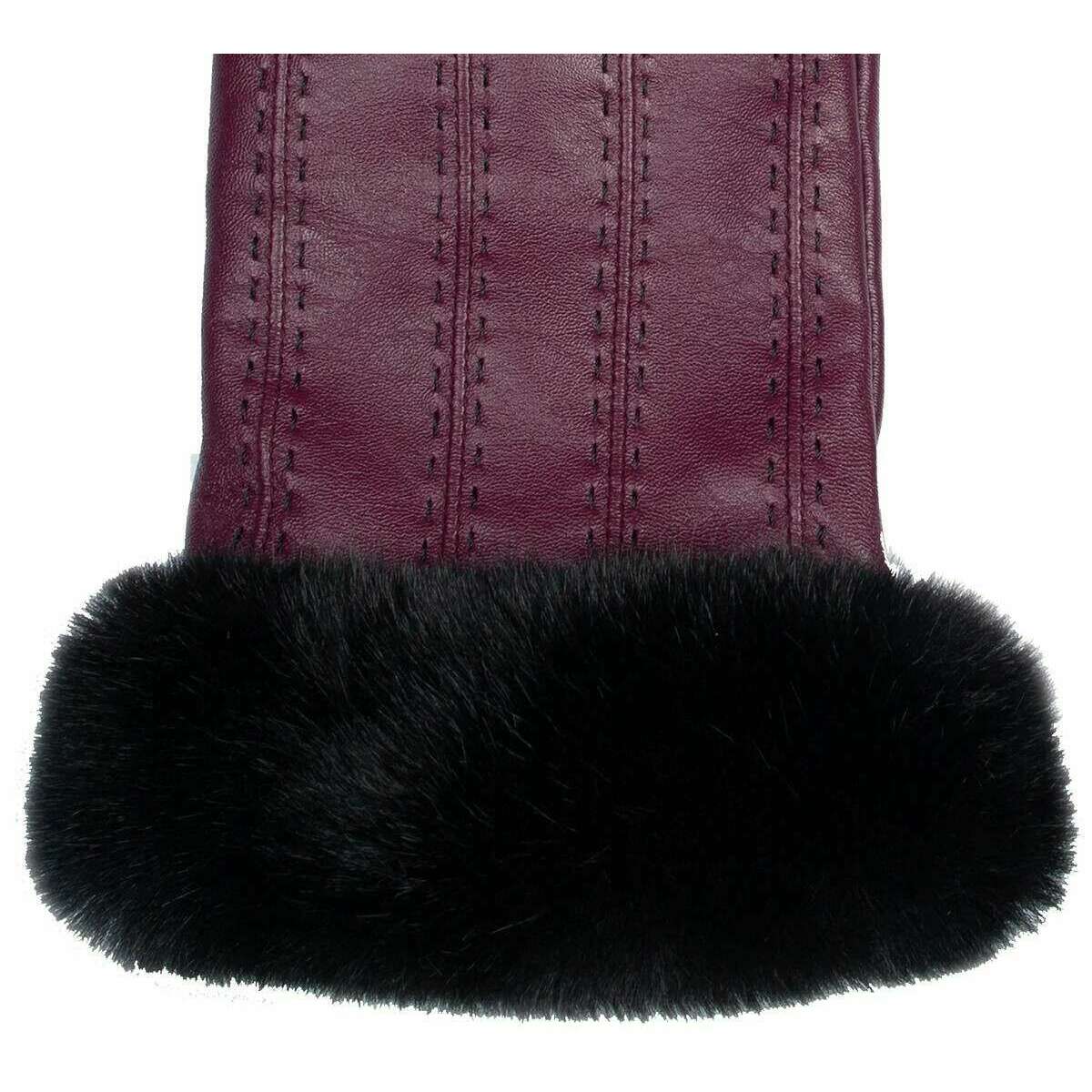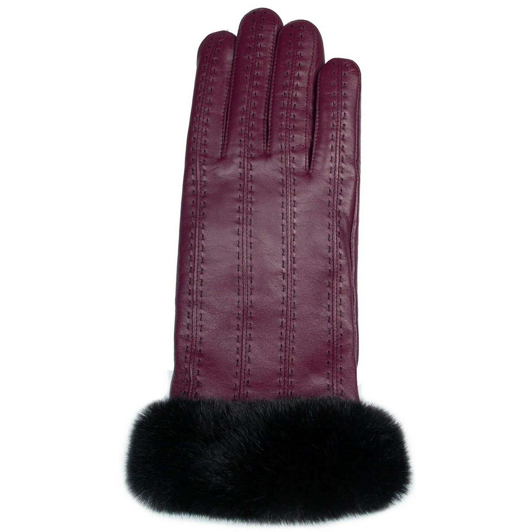 Buler cassie kontrast syning læderhandsker - damson burgunder/sort