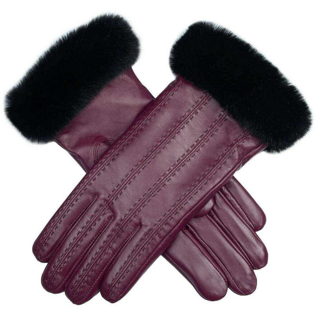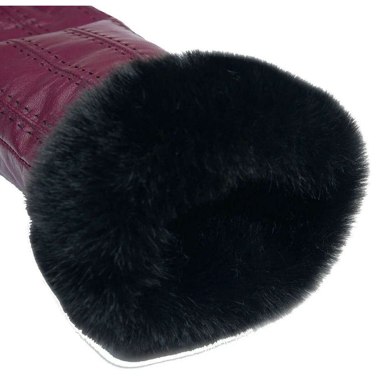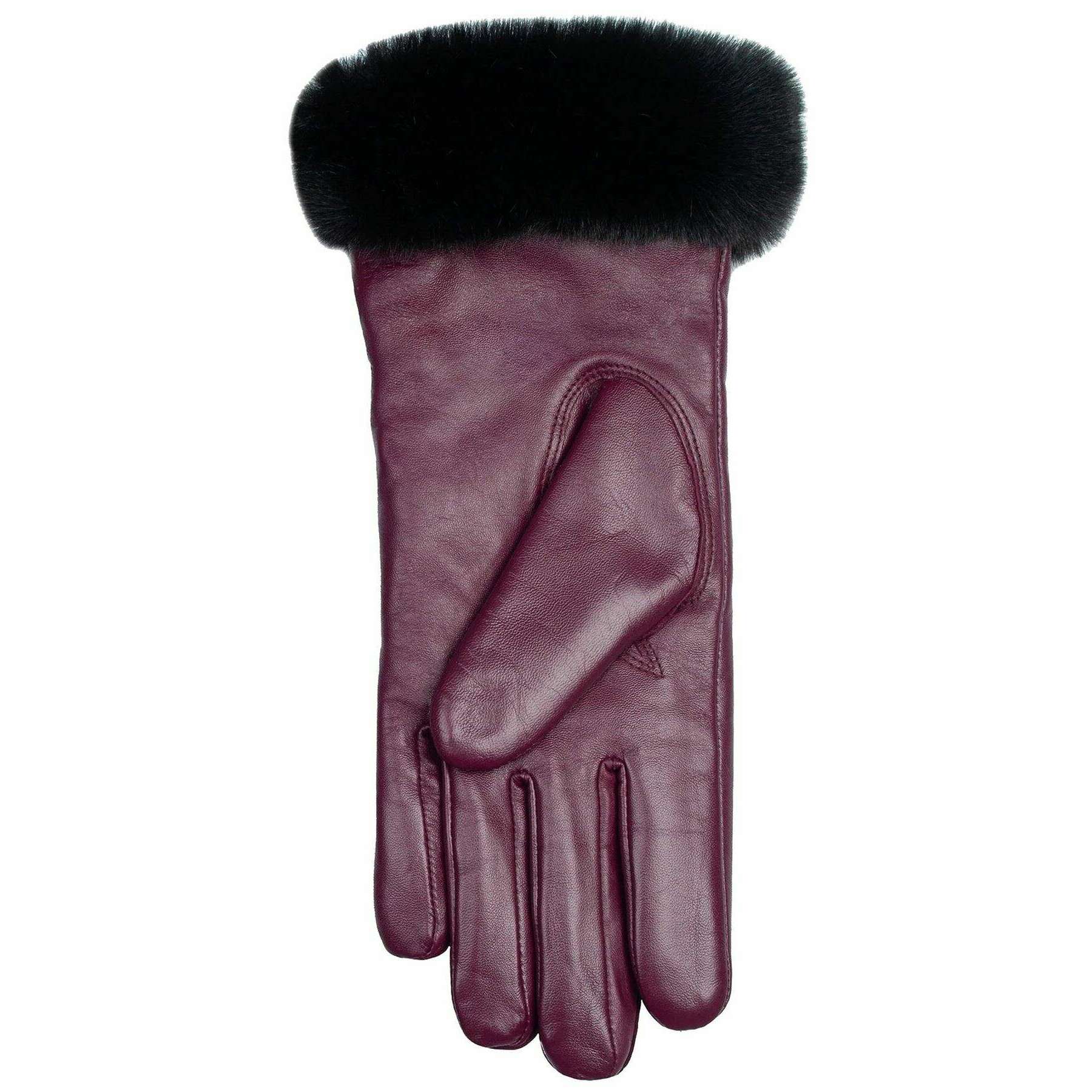 Buler cassie kontrast syning læderhandsker - damson burgunder/sort