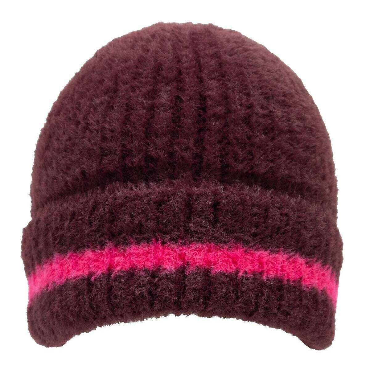 Dents Feather Garn Beanie Hat - Damson Burgundy/Orchid Pink