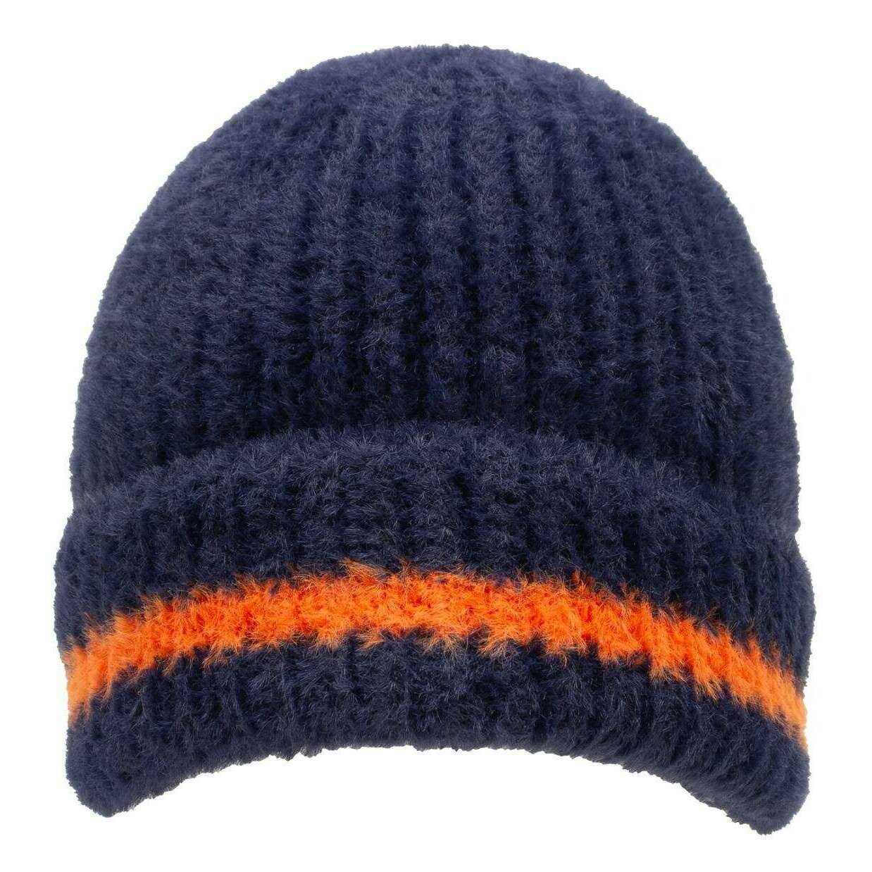 Dents Feather Garn Beanie Hat - Navy/Pumpkin Orange