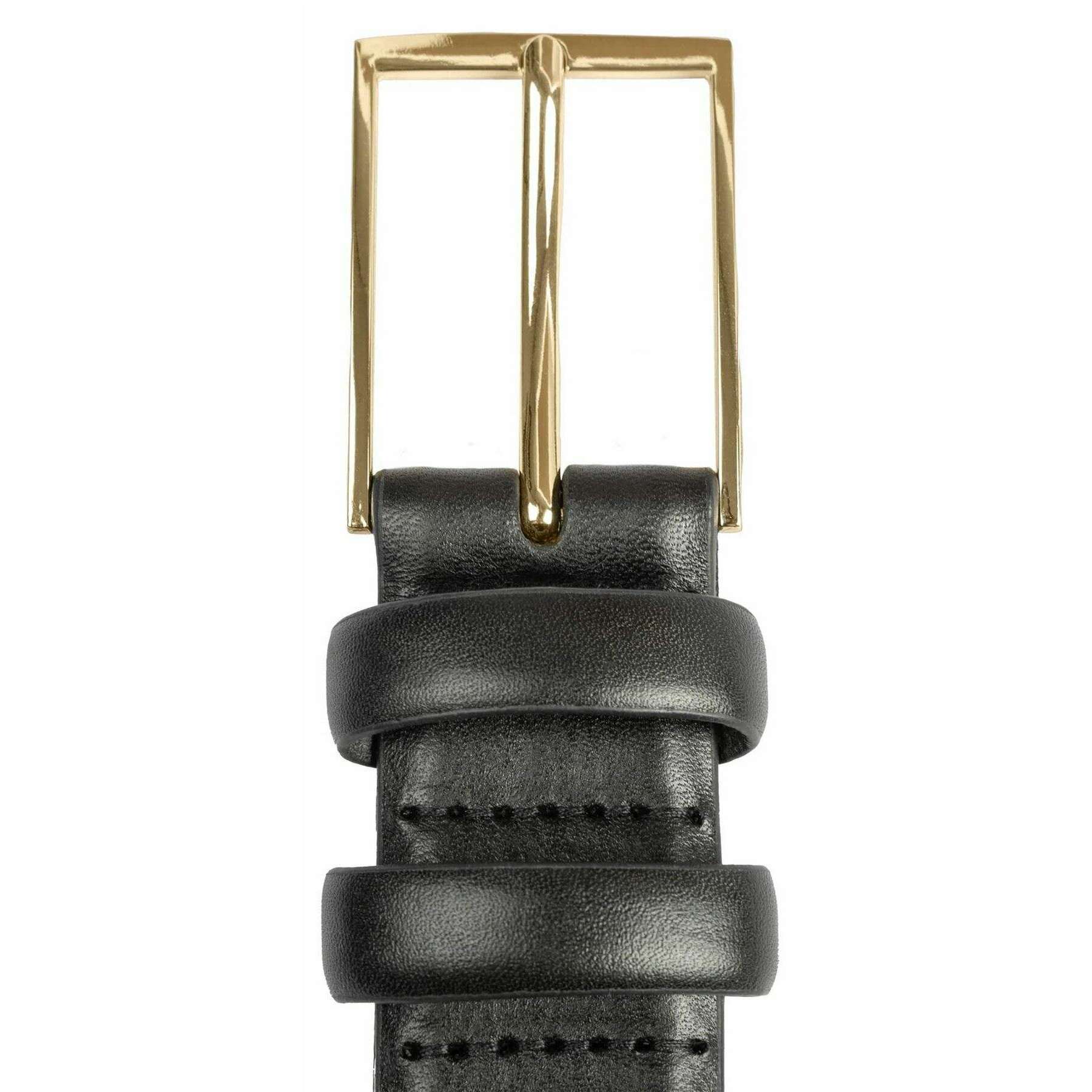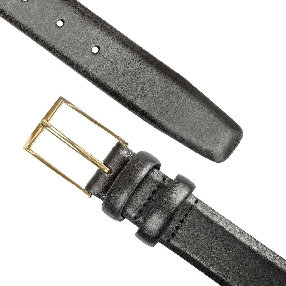 • Afrundede kanter, læderfor, firkantet spænde, dobbelt læderholder, trapezformet bæltespids, fem huller, 3,5 cm bredde