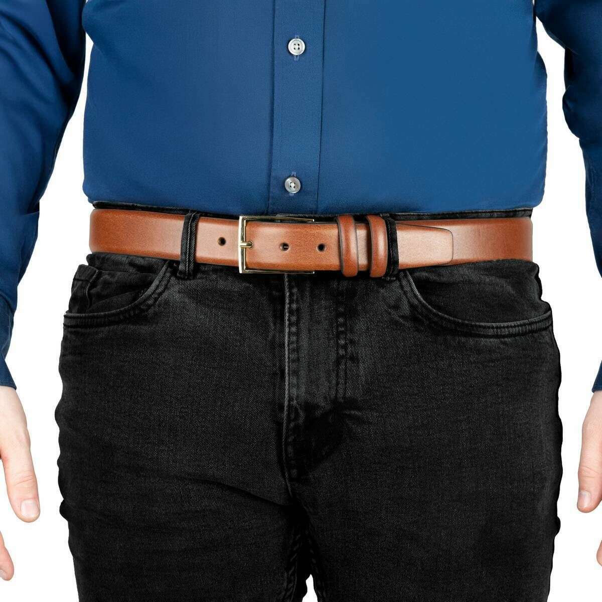 • Afrundede kanter, læderfor, firkantet spænde, dobbelt læderholder, trapezformet bæltespids, fem huller, 3,5 cm bredde