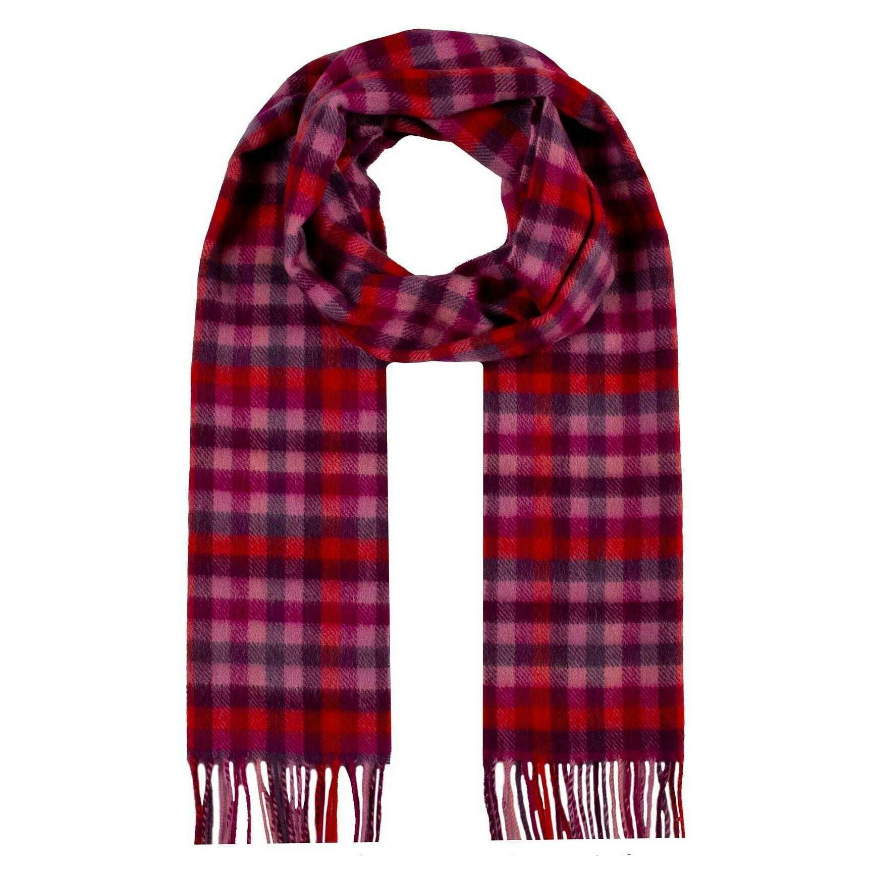 Dents Heritage Plaid Check Cashmere tørklæde - Scarlet rød/lilla