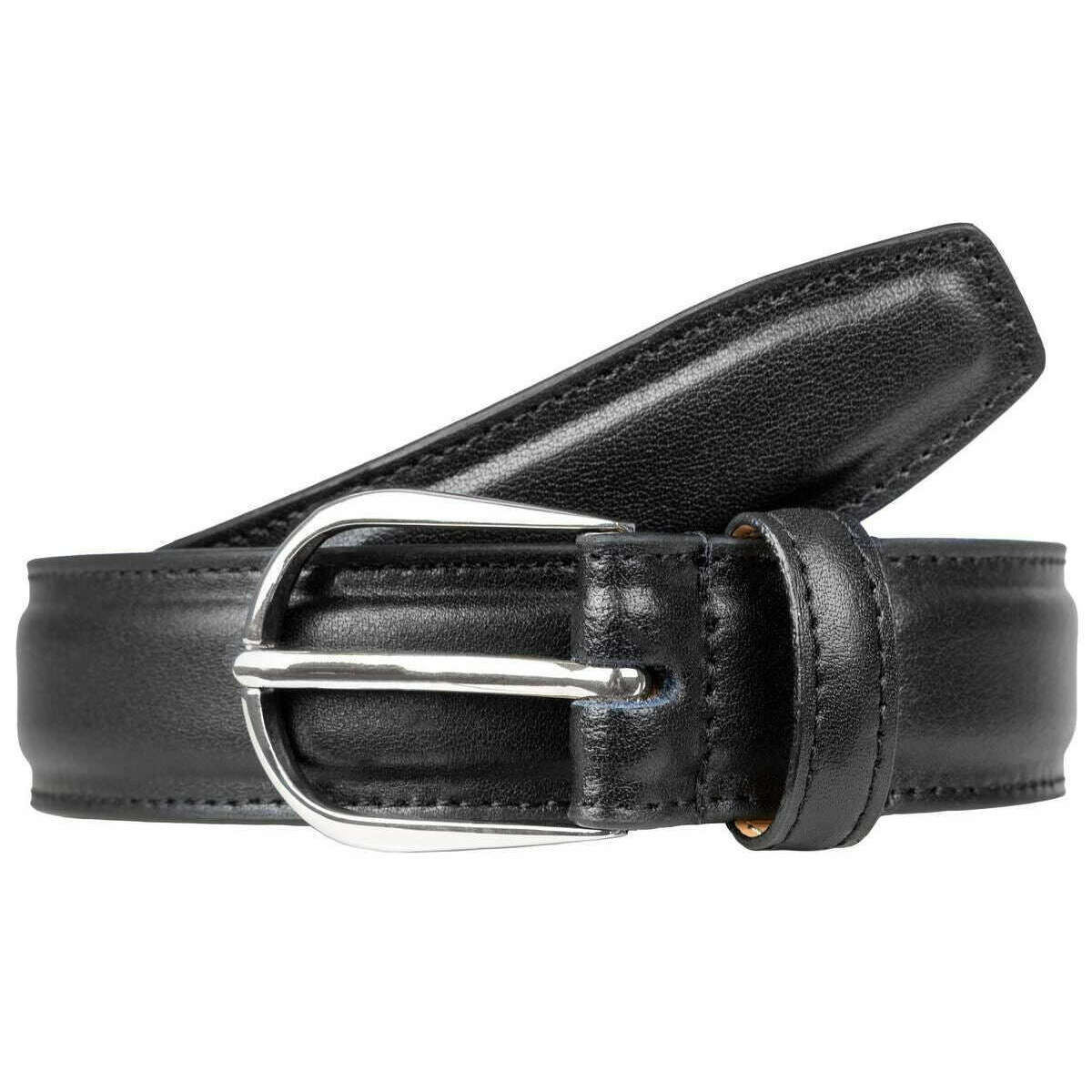 • Syede kanter, foret med nubuck ruskind, ovalt spænde, nikkel- og blyfrit spænde, enkelt læderholder, trapezformet bæltespids, fem huller, 3 cm bredde