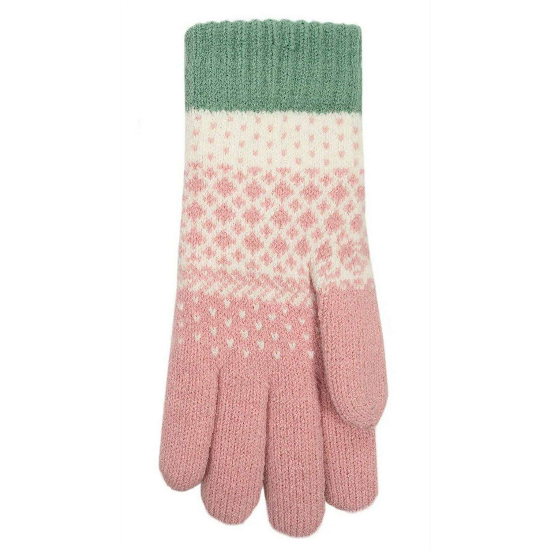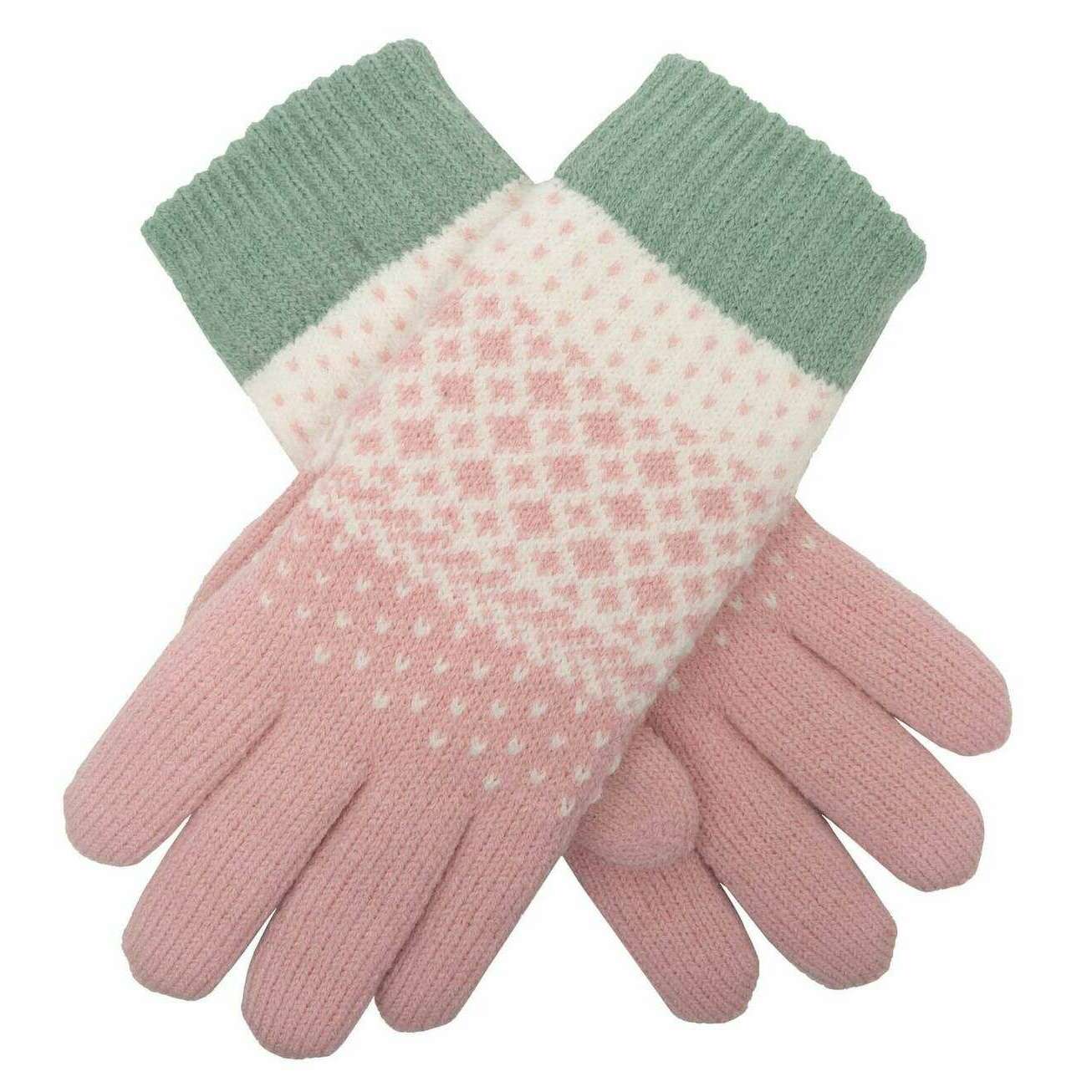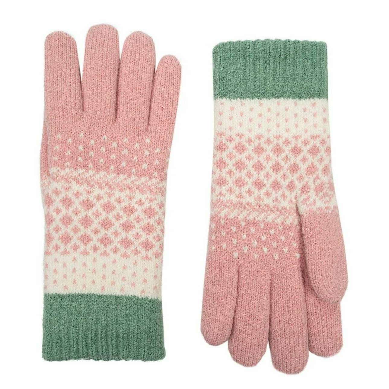 Buler jacquard polka dot strikkede handsker - pulver lyserød/mynte grøn