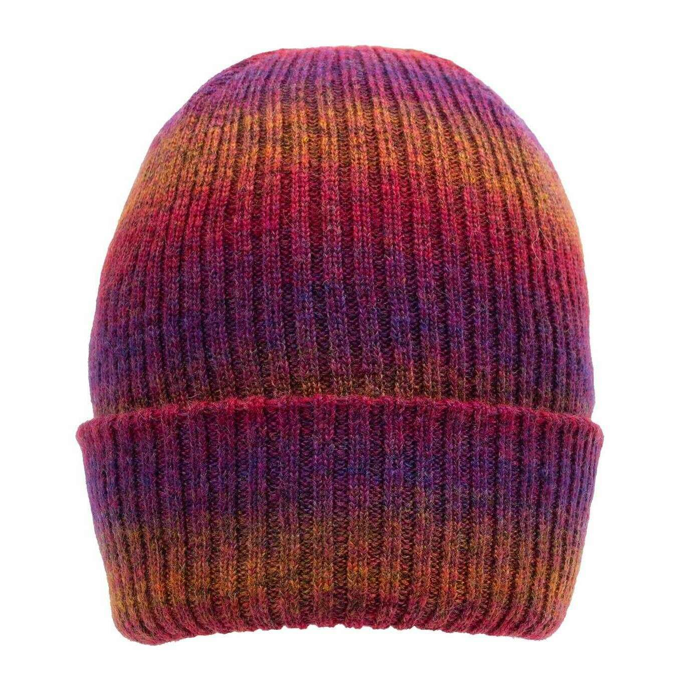Dents Ribbet Strik Ombre Beanie Hat - Fuchsia Pink