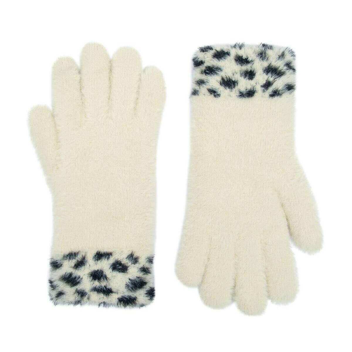 Buler plettet fjergarn strikkede handsker - elfenben hvid