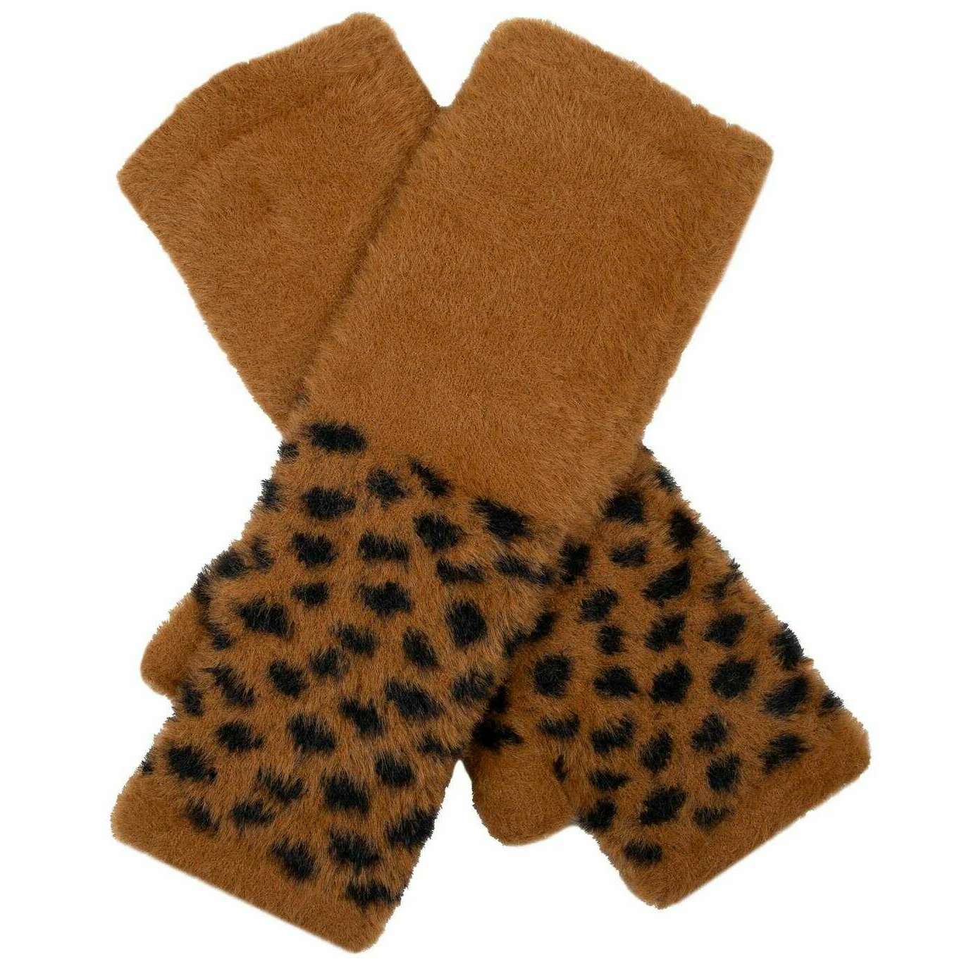 Buler plettet fjergarn strikkede håndledvarmere - solbrun beige