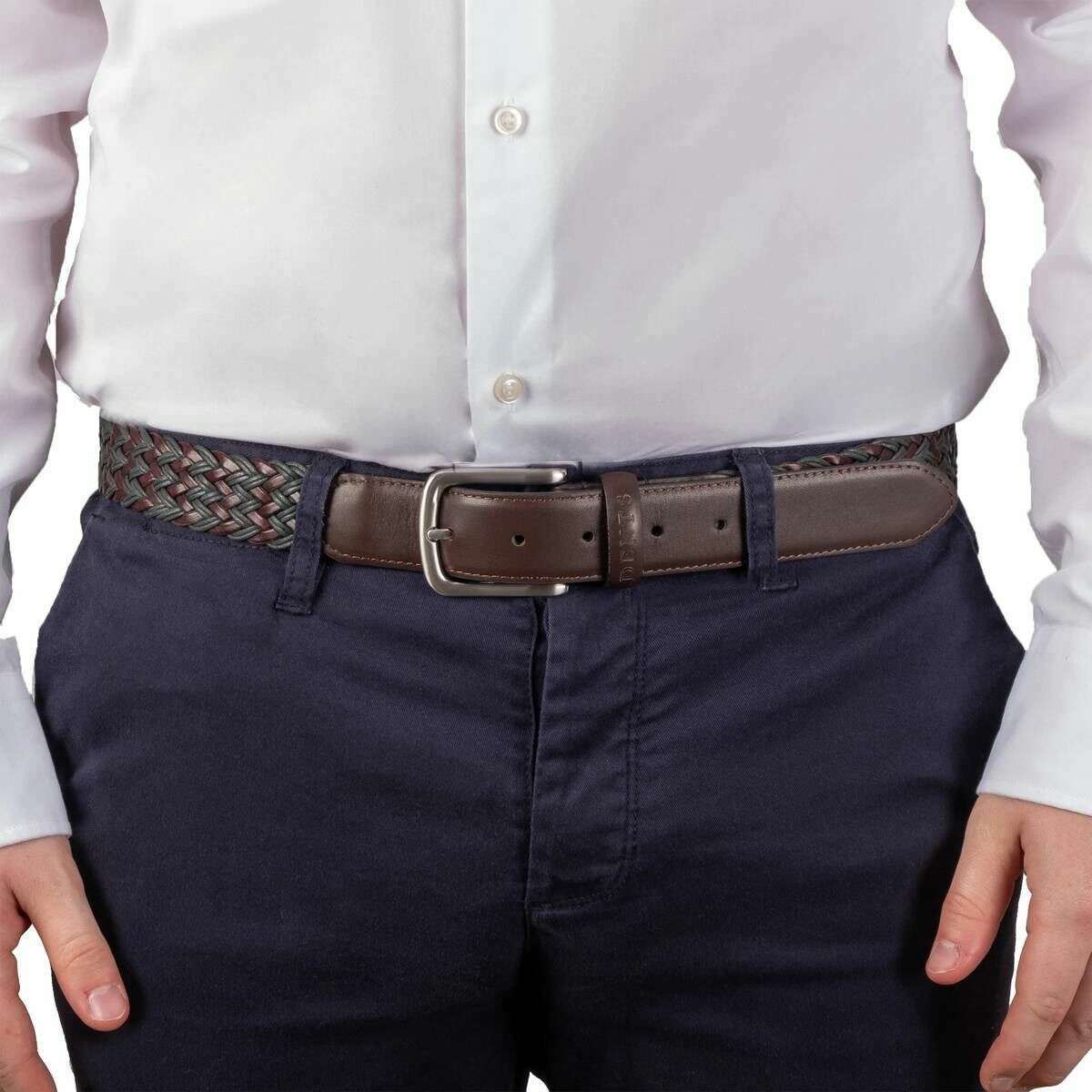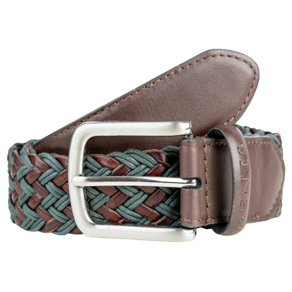 Dette vellavede herrevævede læder- og bomuldsbælte fra Dents kommer i en grøn farve og er fremstillet af 100% læder. Alle bælter leveres komplet med bulemærker. Dents Woven Leather and Cotton Belt - Green er et ideelt valg for dig, der ønsker at bringe en smule stilfuld flair til din garderobe. Dens flettede struktur giver det et fantastisk overordnet look, som vil komplimentere dit outfit perfekt til både afslappede og formelle lejligheder. Dette bælte har en enkelt læderholder, satin nikkel farve fittings og er uforet.