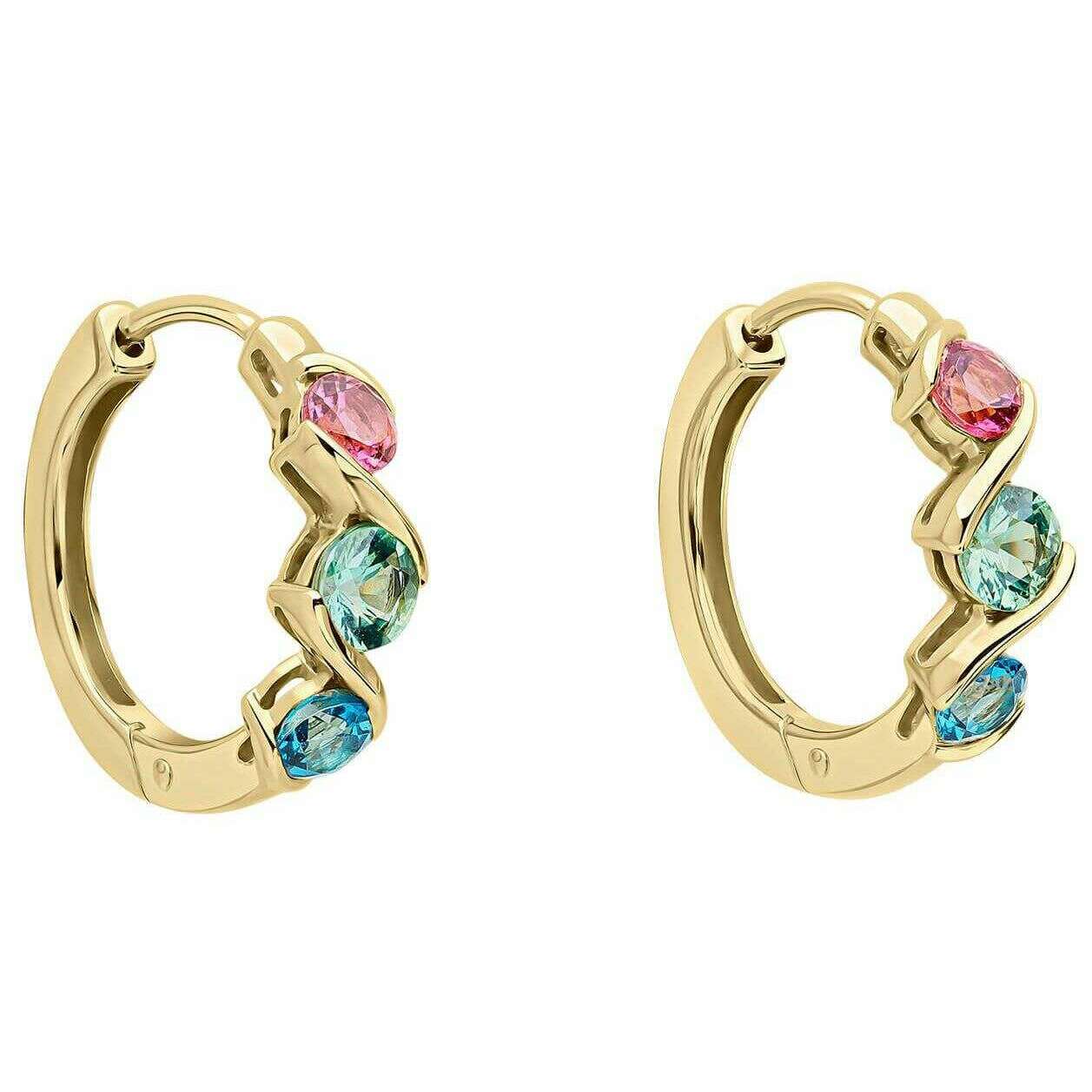 Elements guld Amalfi tre farve twist 9 karat guld øreringe - grøn/pink/blå
