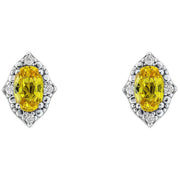 Elements guld ovale safir og diamant 9 karat guld øreringe - guld/gul