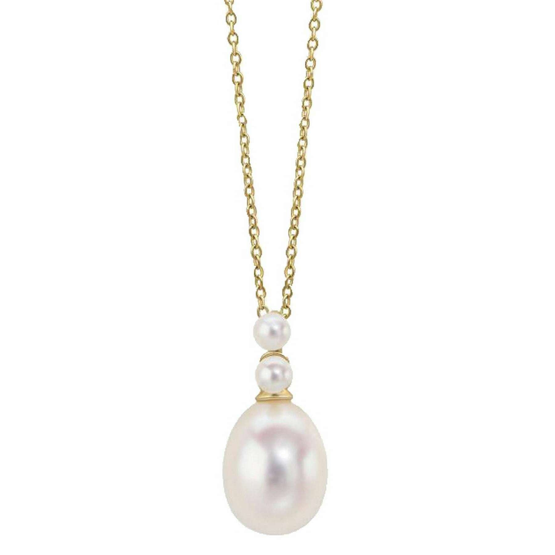 Elements Gold Pearl Detail 9kt guld halskæde - guld/hvid