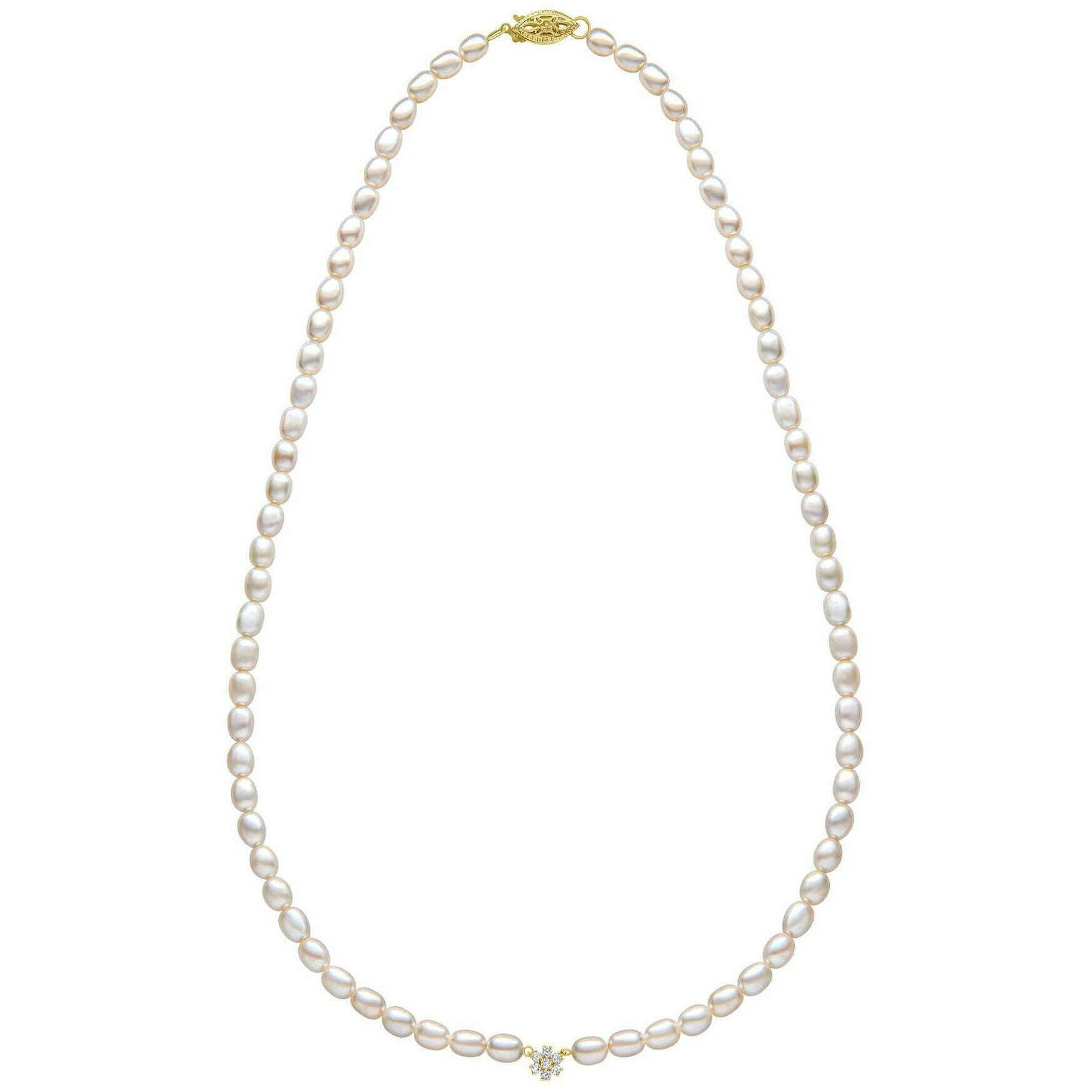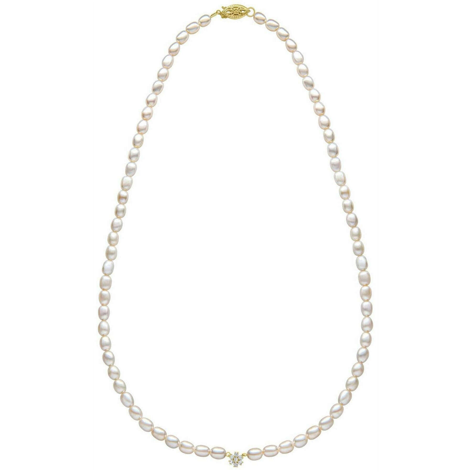 Elements guld frø perle og blomst 9 karat guld halskæde - guld/hvid
