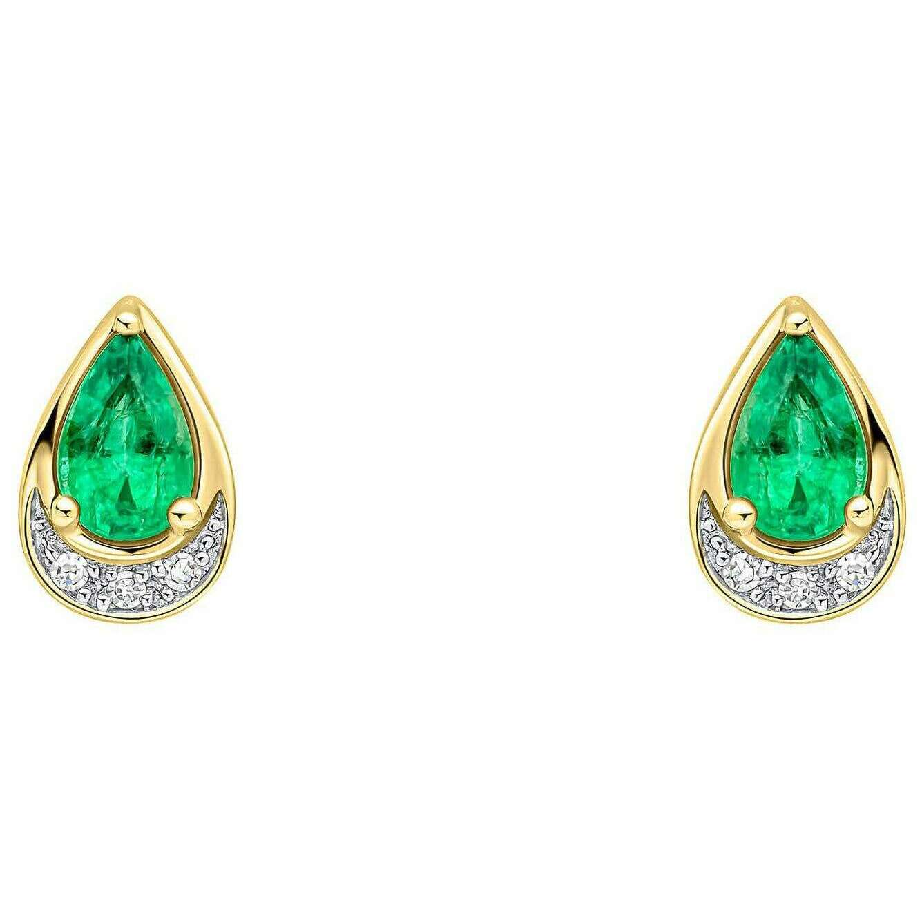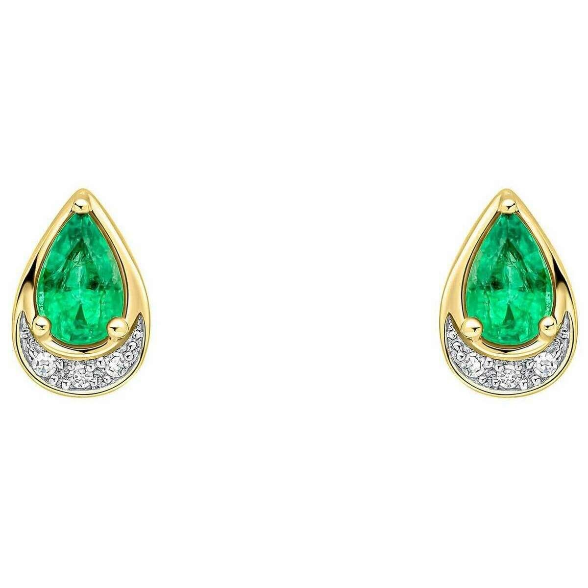 Elements Gold Teardrop Emerald and Diamond 9 karat guldøreringe - grøn